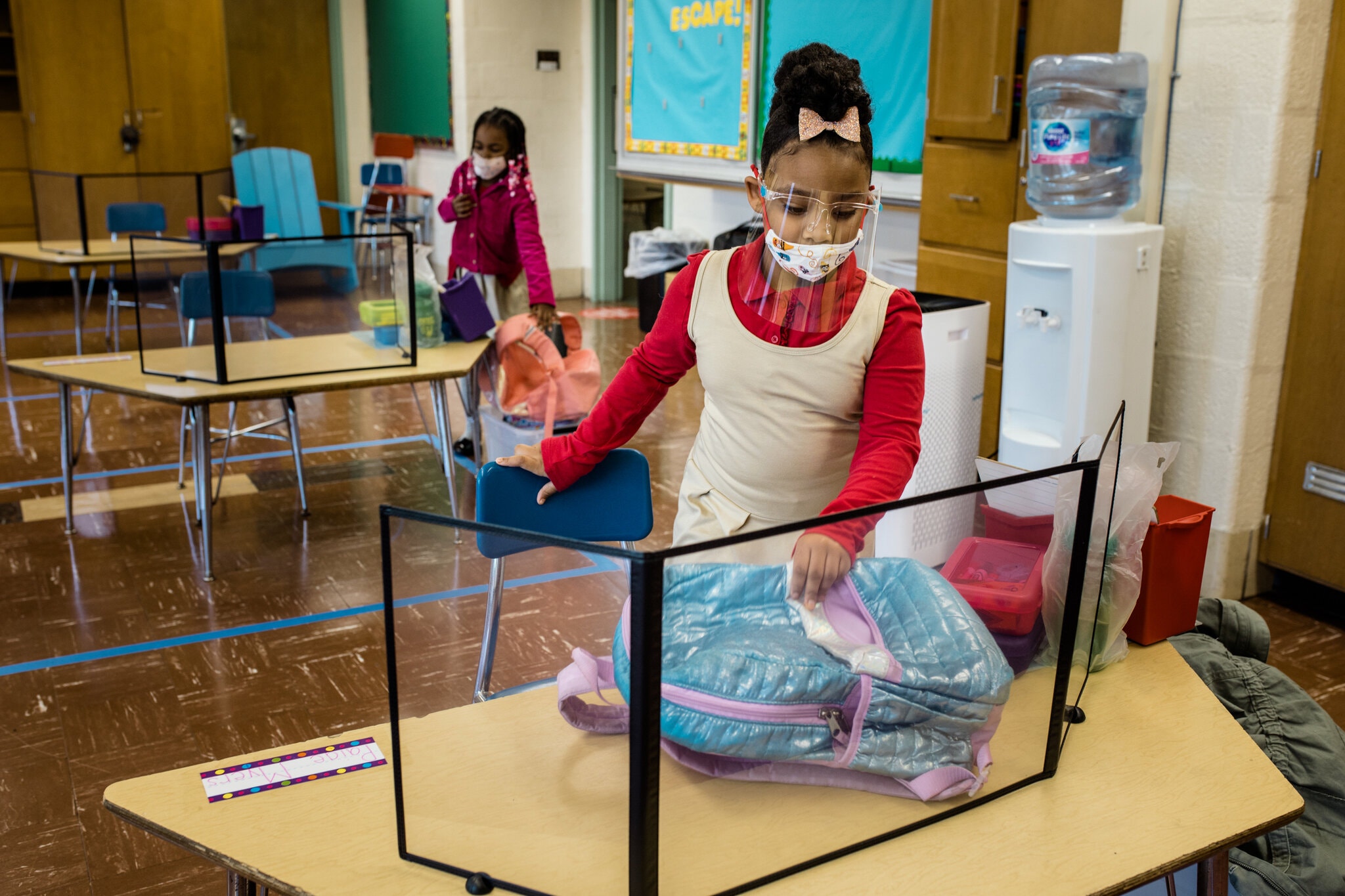 Header image: Paige Myers, 5, arriving at her first day of in-person kindergarten since the pandemic began.Credit...Rosem Morton for The New York Times