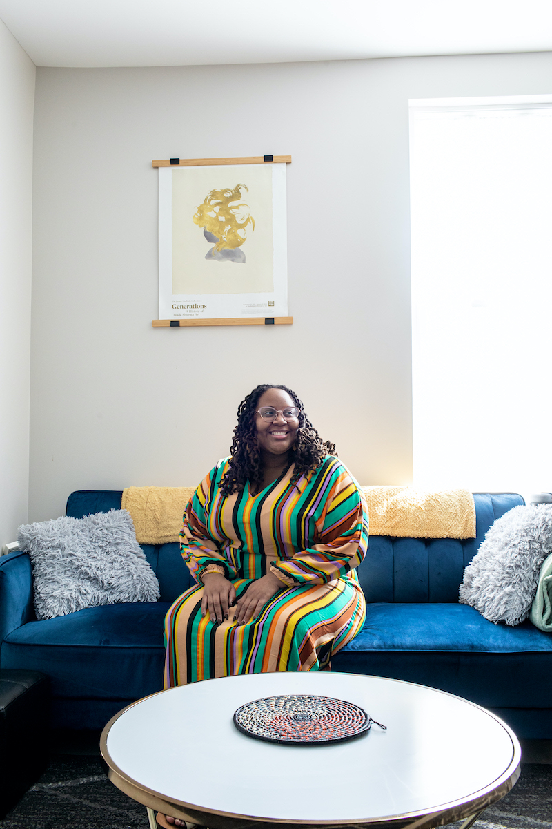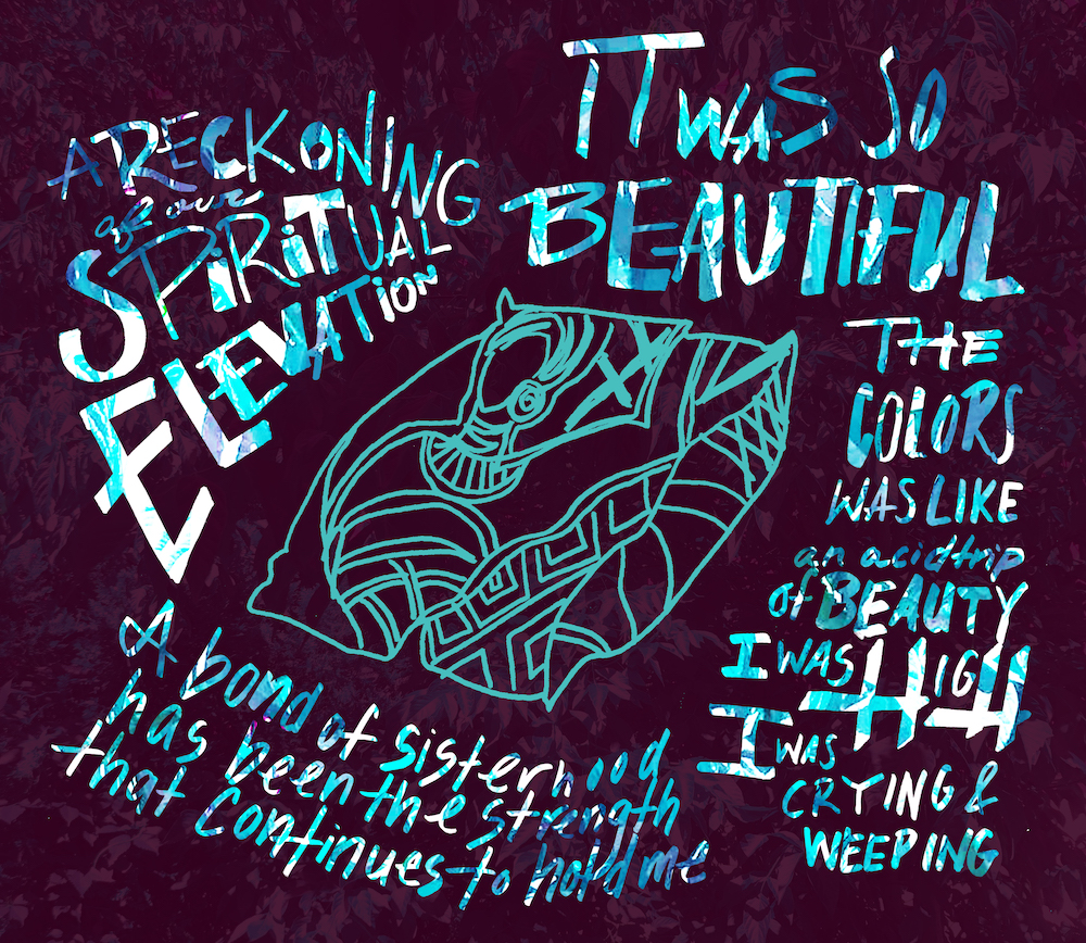 This thesis project led Blake to develop her current project, Celestial Beings, which focuses on telling the stories and sharing the creative spiritual practices of five Baltimore-based Black femme artists. Blake explains that she was drawn to create this work because she was struggling with her own spirituality and was wondering, “Are there any Black women who are also struggling with their spirituality or maybe have found answers that work for them? I want to be your friend,” she says. Because of this, Celestial Beings has become both a research project of sorts and a collaboration between herself and her narrators whom Blake secured funding to be able to pay for contributing their own artwork to the project’s resulting zine and community healing events. Blake believes that the pandemic actually created a silver lining for this project (which began in 2019) because now the project includes a website that has visuals as well as audio and recorded video clips that showcase the breadth of the practices of these five femmes, who are not all visual artists.