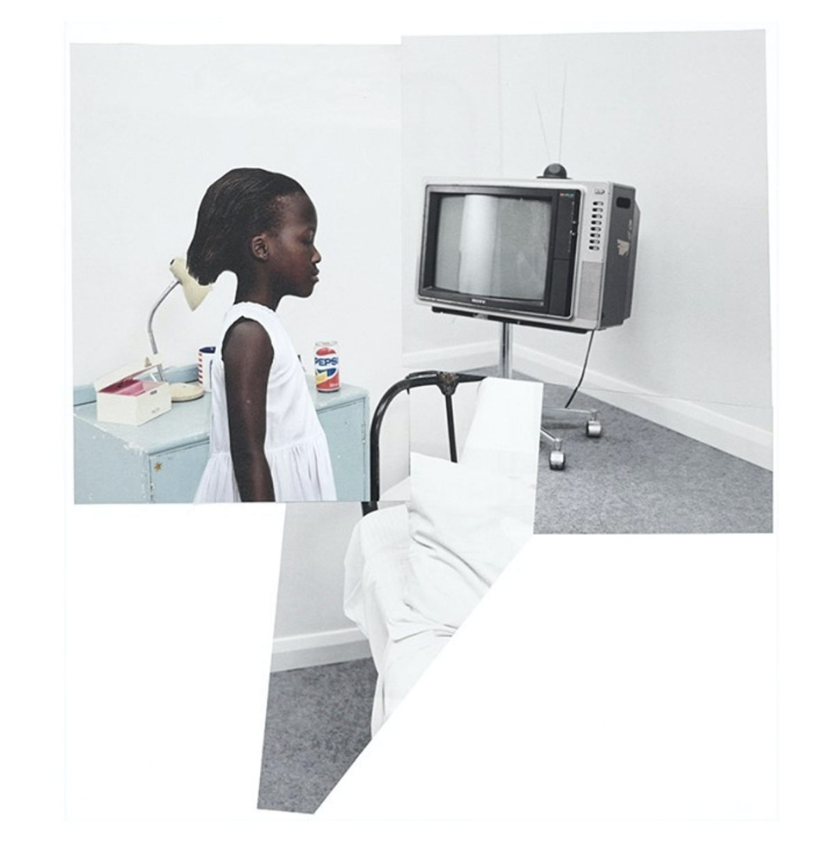 Sterling-Wilson was introduced to collage through the work of Pablo Picasso. She then began researching the Dada movement and fell in love with the work of Hannah Hoch. Romare Bearden’s ability to create a depth of space in his compositions inspires her; James Gallagher, Lorna Simpson, and Martha Rosler also inform her practice. But her style is totally hers, even as it lifts elements from these greats. With each layer of paper applied with glue, she is paying homage, giving respect, and continuing in their individual legacies.