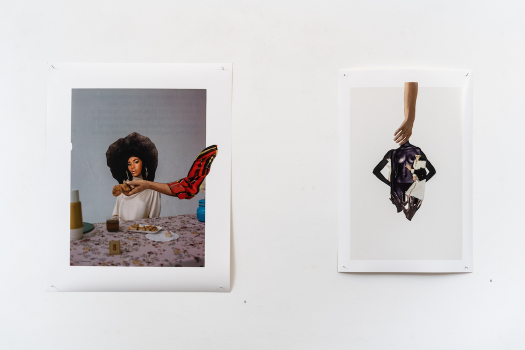 Collage can imply a flat surface, like the twelve paper pieces Bria Sterling-Wilson created for her solo show at Full Circle Gallery, Issue No. 1. It can also refer to various processes of creative alchemy that have been passed down through generations of Black families. Our ancestors made quilts from pieces of discarded materials, they composed songs without formal training that birthed entire genres or creative musical expression, and from discarded scraps of food they created sustenance.