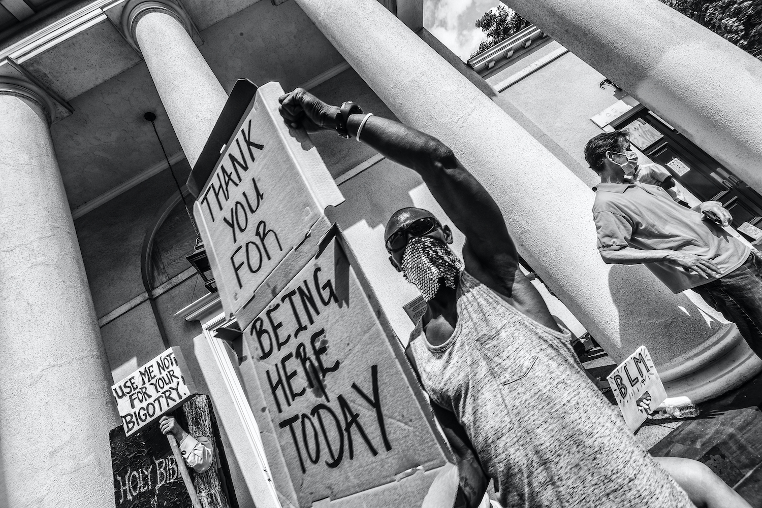 From 2016 to 2020, Giordano covered Trump protests in city streets and airports as well as counter-protests to Trump rallies and events. This collection of images reflects a variety of moments culled from dozens of different locations he experienced personally. Far from a comprehensive depiction of any one type of protest, this series focuses on signs and symbols, human figures, and crowds to create a multifaceted portrait of a movement and, sometimes, its counter-movement.