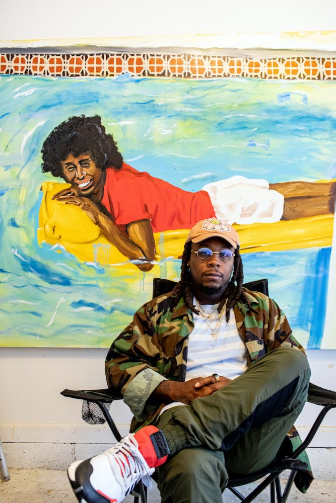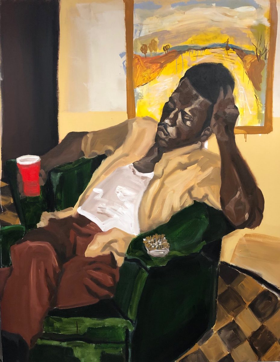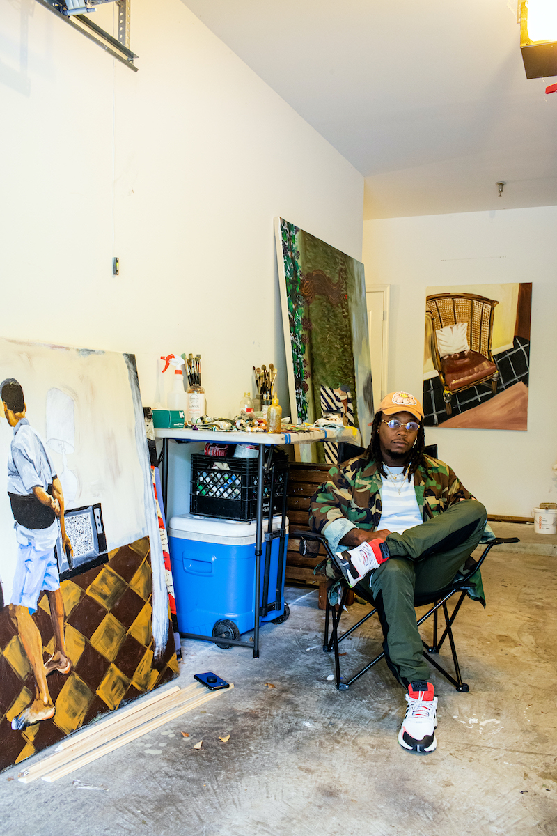 Too many to name, but for the sake of the interview, I would say Henry Taylor, Noah Davis, Lynette Yiadom-Boakye, Njideka Akunyili Crosby, Henri Matisse. I love Picasso. I love Picasso because he showed me that it was okay to continue to evolve and change what you’re painting about based on what’s happening in your life. Most painters that I’m really into have an affinity for using paint in a manner that is beyond illustrating something—it’s like they create a language with paint. The paint is working with itself to create something. It’s beyond me making it look good—it’s putting paint right here and putting paint right there and they’re going to mesh and jel and have this beautiful interaction, and mesh and play and come up with things that I couldn’t even do on my own. That’s what I’m really into, those that are artists that I really lock in with.