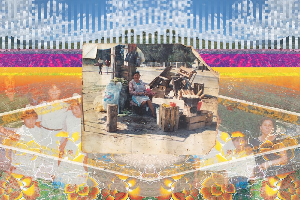 Only occasionally does Reyes’ grandmother let him actually take any of those treasured photos back with him; more often, he photographs them and uses the images in his digital collages, installations, and prints. “My grandma doesn’t like getting rid of photos,” Reyes says. “She likes me seeing them and photographing them.”