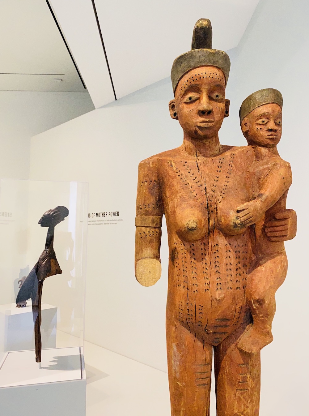 The Baltimore Museum of Art’s exhibition, A Perfect Power: Motherhood and African Art, is filled with ritual objects that celebrate the creative force of the mother. The show’s broad subject matter, sculpture from African matrifocal societies, offers a mixture of sociology and art that isn’t easy to fit into any genre or category. The exhibition compelled me to assess family and gender roles very differently from what I’m used to in the West, offering a transnational message that can teach us how feminism and advocacy can appear in different forms that are culturally specific. Within African societies where the mother has a more dominant role, neither the mother nor her related rights are seen as a liability in a man’s world. Instead, motherhood and child-rearing are not individual responsibilities, but functions of the community.