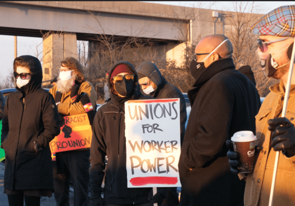 Excerpt: On Sunday, Feb. 20, outside of the Sparrows Point Amazon facility in Baltimore County, several dozen people braved freezing temperatures to hold a car caravan and demonstration in solidarity with unionizing Amazon workers in Bessemer, Alabama.