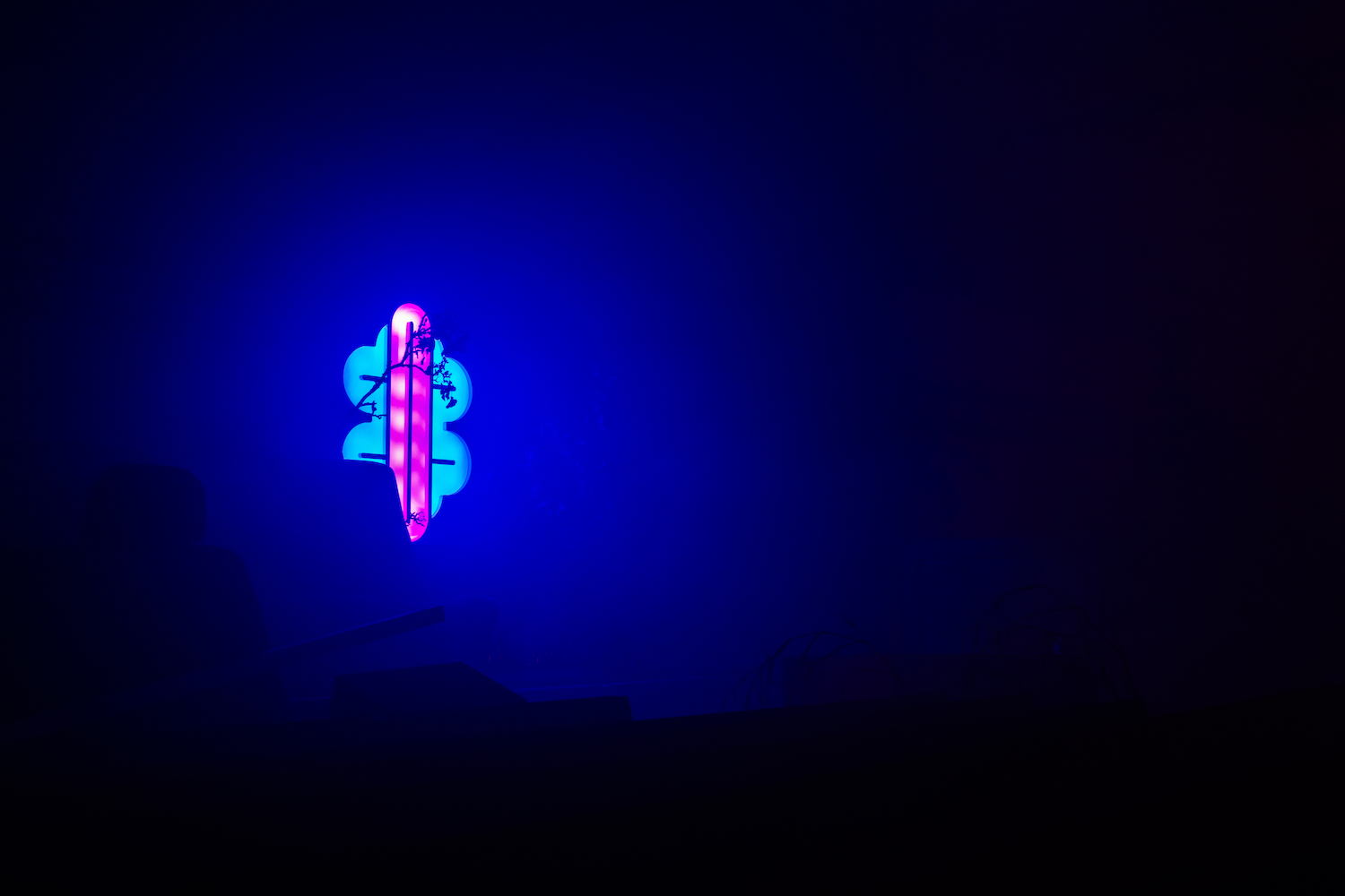 I think of my work as an ongoing exploration of materials and processes that tries to find the best way to express a particular idea. A good example of this principle are the neon signs at the exhibition. It is very easy to associate neon and logos to a specific time period. Neon signs were widely popular in the ’60s and I purposefully capitalize on this allusion to instill an anachronistic feel to them. Therefore, the selection of materials is intended to generate both a visual and an emotional effect to the viewer.