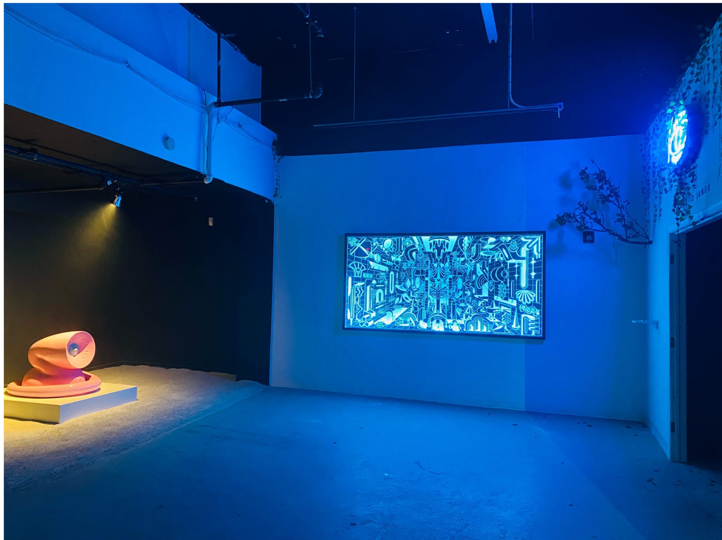 The oldest artwork displayed at the ORBIS TERTIUS -Hlaer to Jangr– exhibition is “THE PIG,” the black and gold inflatable sculpture located at the backroom area of the exhibition. This specific piece was created as part of my MICA thesis show in 2014, and I included it as a tribute to my student years, and to reference the visual catalog of misplaced artifacts that this universe is capable to contain. The rest of the exhibition covers eight years of work, although about half of the content was created in 2021.