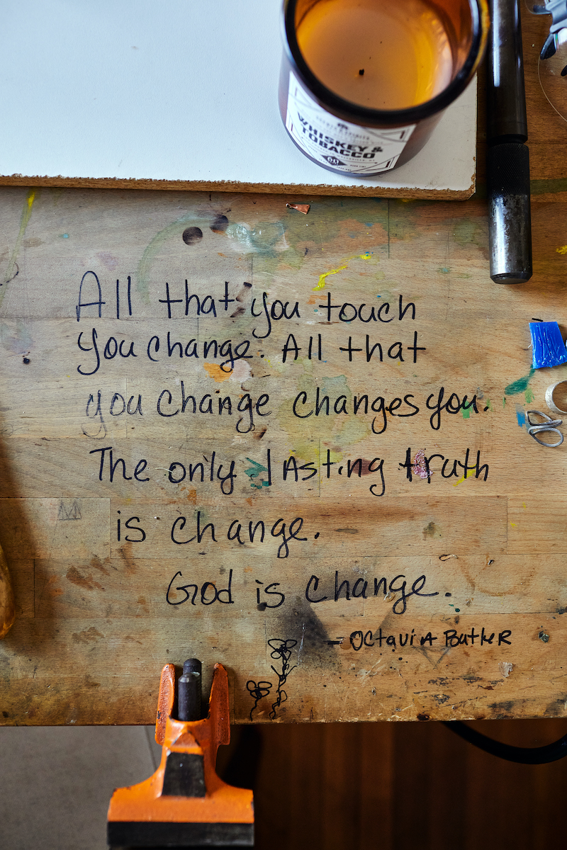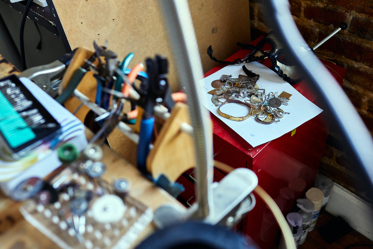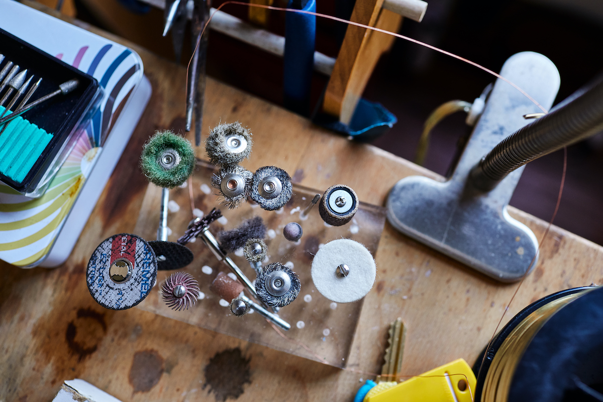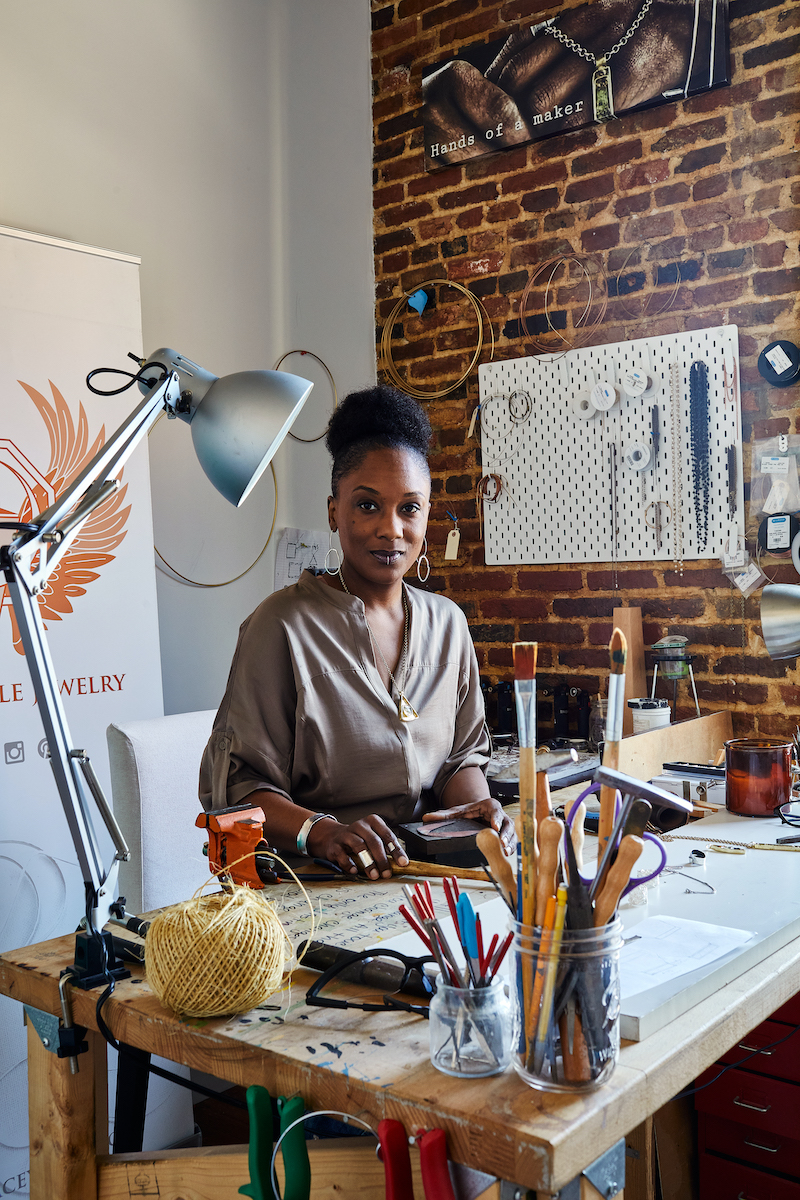 Tracey Beale plays with fire. The jewelry artist, vocalist, and program manager for the Baltimore Museum of Art is constantly thinking about metal—its malleability and changeability when heated are attractive to her, but so is its permanence. Beale understands the role that jewelry plays in families and hopes her work will be worn by one person and passed on to others over time as an heirloom. “What is jewelry without the body?” she asks. “It becomes something completely different. People wearing the work is just as important as the work itself.” When tied to memories of the wearer, jewelry becomes a reminder of those who came before us, and Beale is constantly aware of working in close conjunction with legacy.