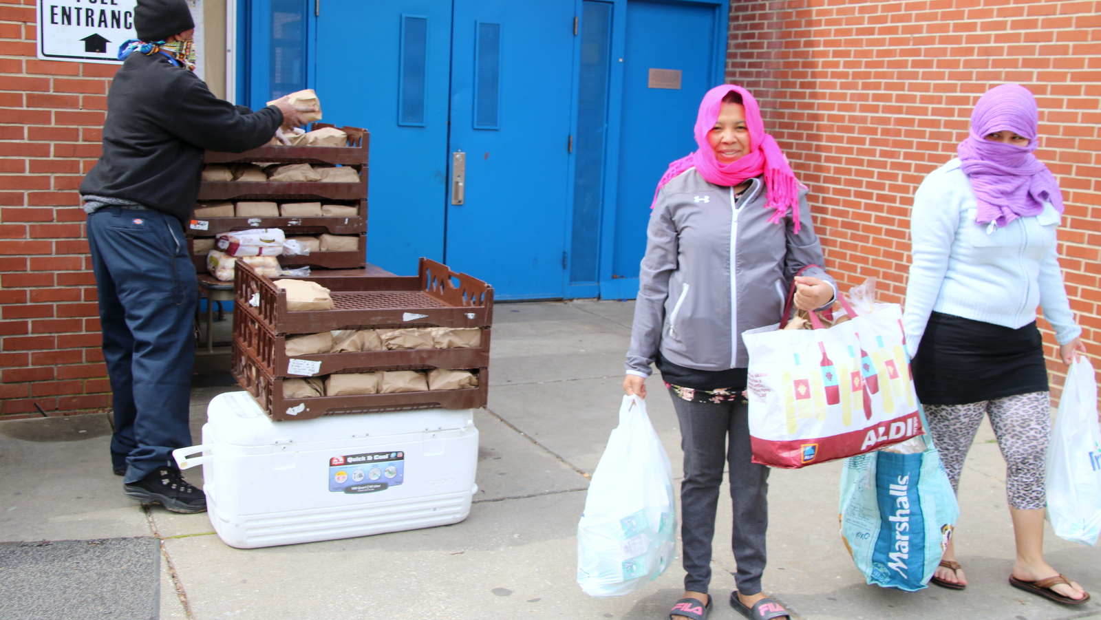 Header image: Doris George (left) and Jeraldin Garcia pick up food at the now-closed food distribution site in April 2020. (Louis Krauss) from Baltimore Brew