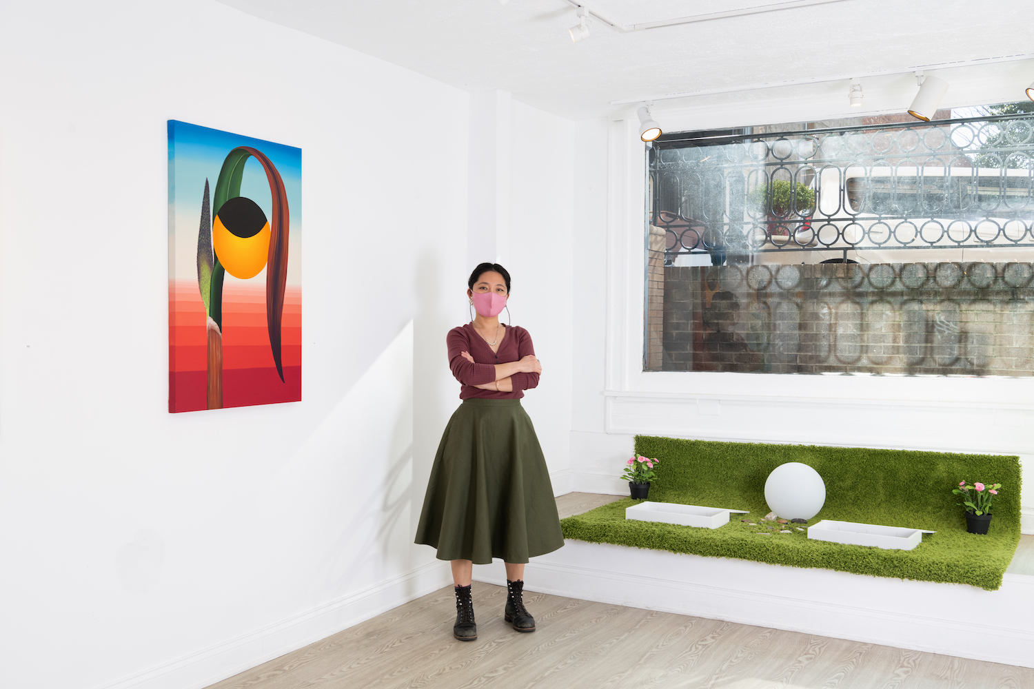 With the natural curiosity of a scientist, Cho laughs that she “gets inspired by everything.” She describes herself as a convergence of art and science, an artist and environmental scientist who wants to blur the boundaries between her fields through her compelling acrylic paintings.