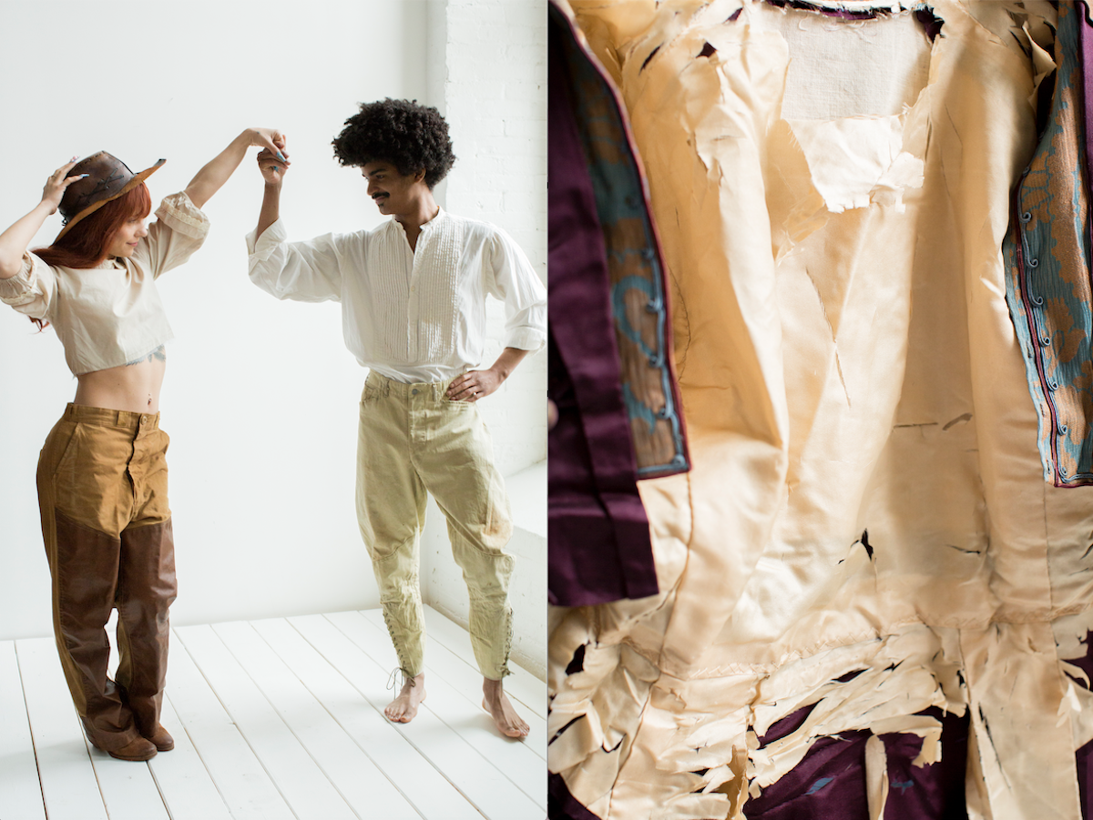 For Angie Gavin and Kate Schultz of Milk & Ice Vintage, clothing is a concept centered in cultural anthropology and material culture. Their cavernous Woodberry studio boasts hundreds of clever T-shirts, piles of denim, and the array of Halloween costumes that earned them legions of Instagram fans. However, it is their collection of extremely rare garments from the Victorian and Edwardian eras (1860s-1880s) that has kept the pair’s rapt interest.