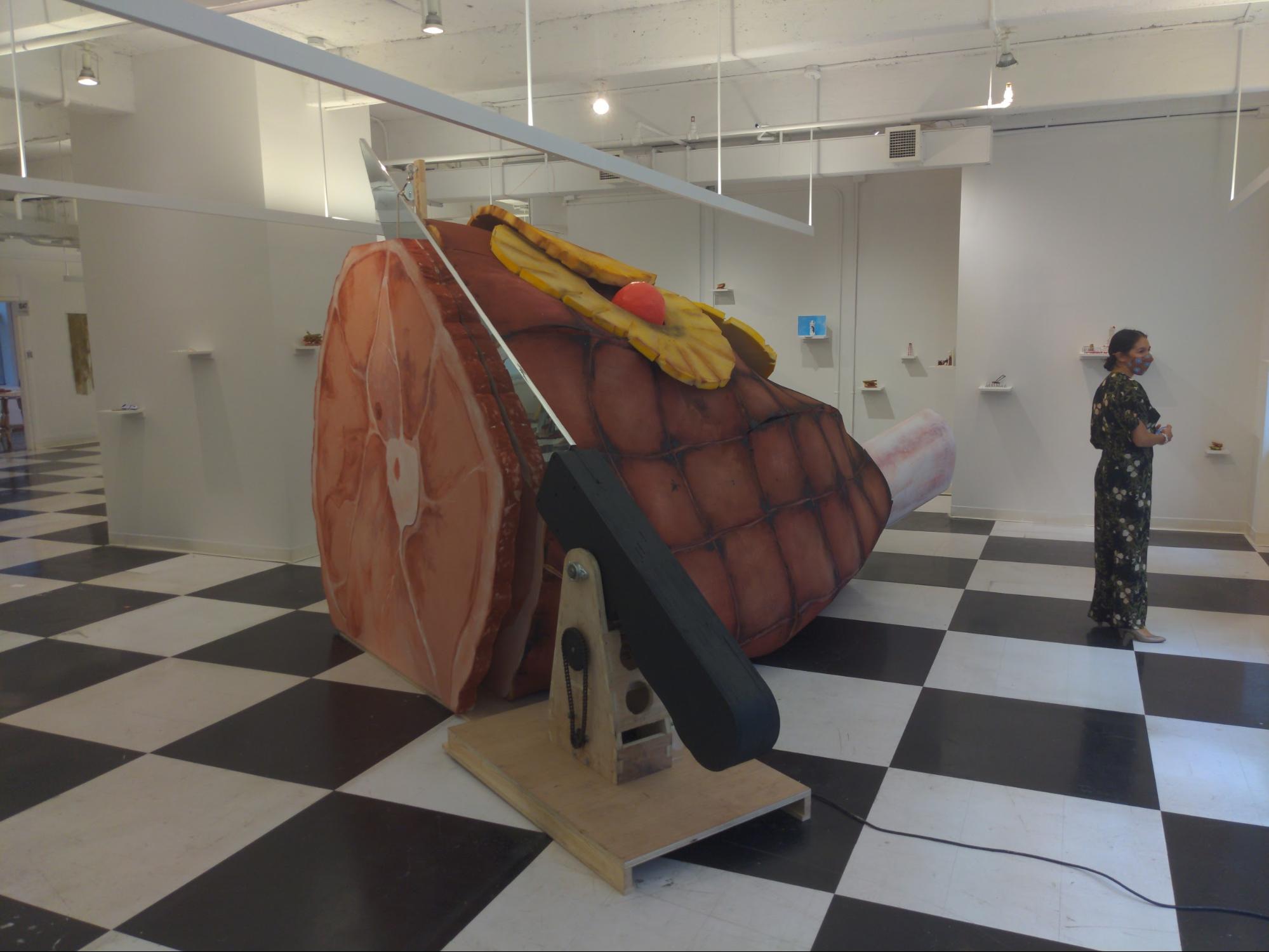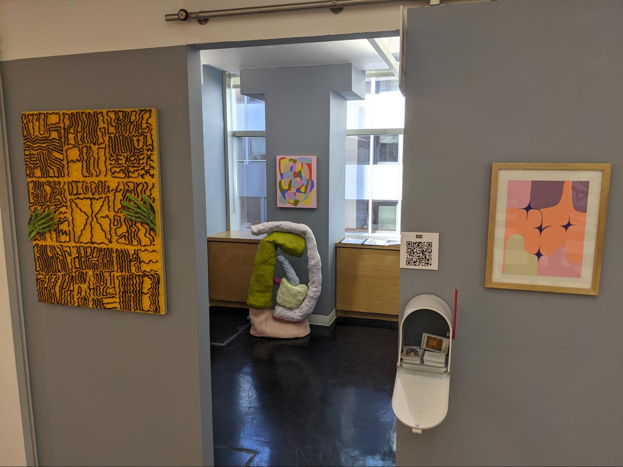 Almost all of the artworks here proudly look handmade and homemade. Seeing them in the context of vacant cubicles is a strangely validating and optimistic experience. If we’re to believe the Zoom-and-gloom “Death of the City” headlines that proliferated as COVID made office spaces some combination of verboten and subsequently obsolete, there will be plenty of these large floorplate spaces with labyrinthian layouts sitting empty in the middle of our cities for some time to come. SPRING/BREAK serves as a long-running model for creative, joyful reuse of these seemingly soulless spaces.