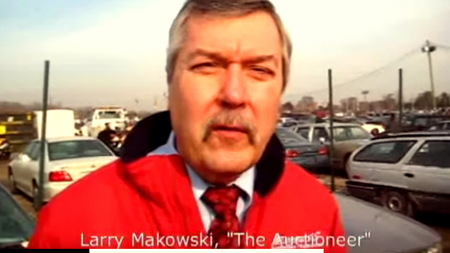 Larry Mukowski seen auctioning cars at DOT’s sprawling impoundment yard. (youtube.com, 2009)