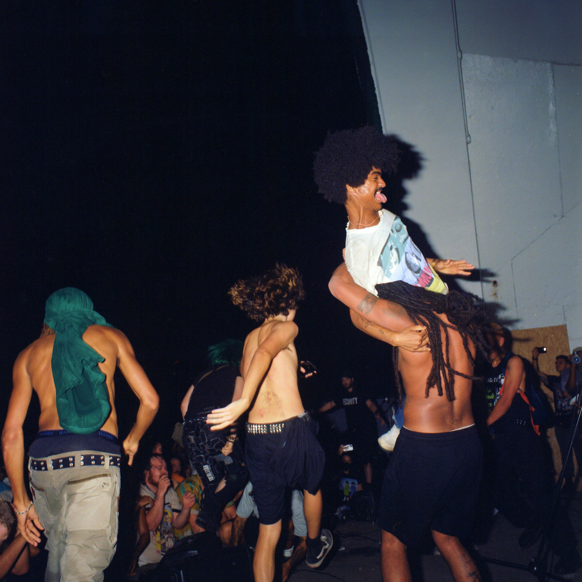 I love being as close to the stage as possible at most shows, but I knew that with this show things would need to be different. Turnstile concertgoers are true hardcore fans and they come ready, dressed and prepared to enter the pit, recreating the familiar rush of people pushing, pulling, lifting, diving, and dancing. A throng of Baltimore people, in waves, protecting stage divers from being hurt, allowing the brave individuals, those most die-hard fans to leap into a sea of fans and surf in ecstasy and glory.