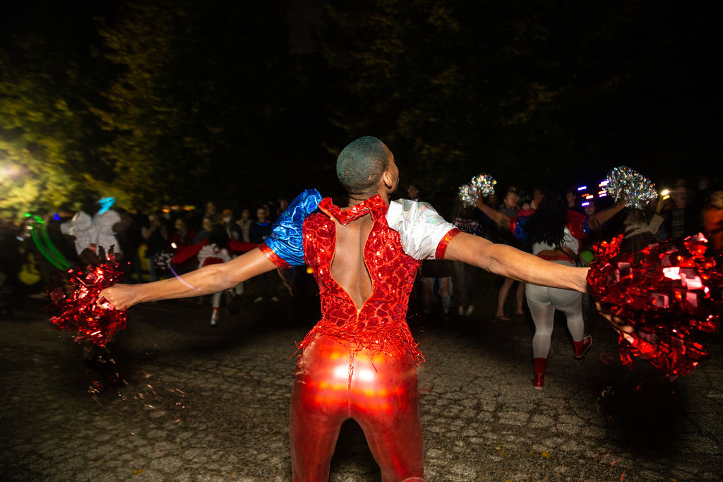 Photographer E. Brady Robinson captured the Great Halloween Lantern Parade’s exuberant energy—the inventive costumes, glowing lanterns, and tricks of light.