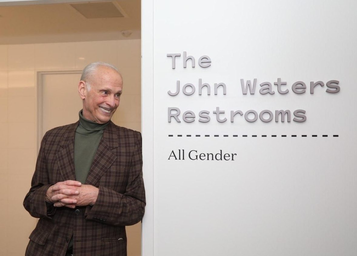“I really wanted restrooms to be named after me,” said John Waters at the Baltimore Museum of Art, at an October 27 reception commemorating new gender-neutral bathrooms bearing his name. “Why? Public restrooms make ALL people nervous! Sometimes they attract perverts. And they’re fueled by accidents, just like my favorite contemporary art.”