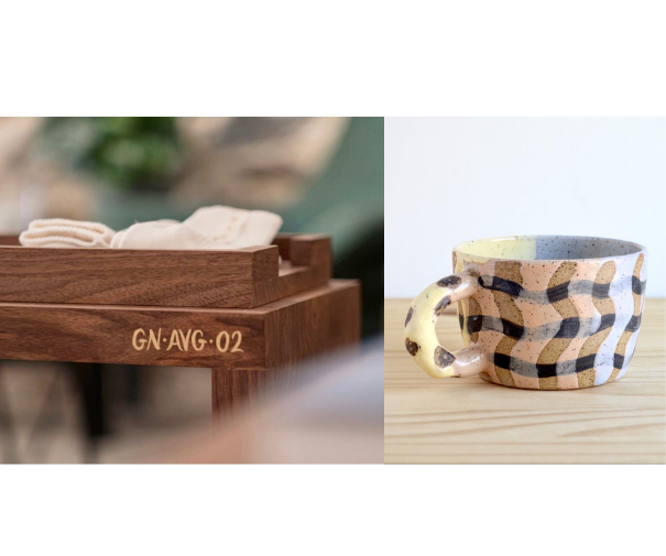 Peruse Good Neighbor’s collection of artist’s pieces, such as this collaboration made by woodworkers Alejandro Garcia and Estela Macedo: “Each piece is unique in form, handmade using local walnut or white oak, and numbered by sign painter Sean Danaher @danahersigns.”