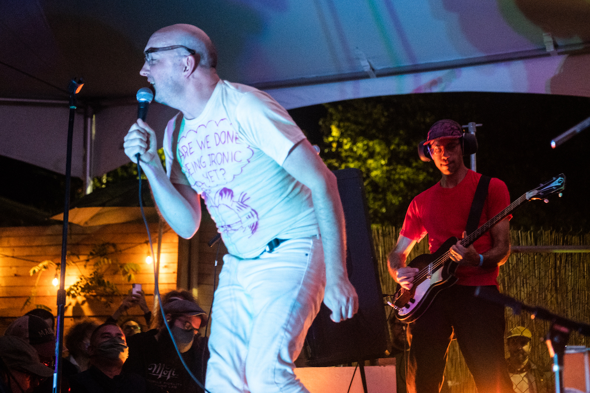 Shortly after, they announced the early October release date of their new album, Sophisticated Urban Living (Contemporary Conveniences Edition). The new album’s concept was made clear to me as the band performed their classic song “Luxury Condos for the Poor” at the end of the Current Space show. “A fresh coat of paint won’t cover up these stains,” Strals sang. Their on-stage performance embodied their sincere punk spirit with a relentless expression against gentrification, class indignation, and the phenomenon of house flipping before the 2008 financial crisis. The song rang familiar to the current situation in the United States, with many people unemployed and unable to pay rent or mortgage, while the housing market is still going up.