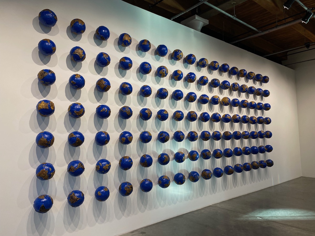 Crates of Mallus by Mark Bradford is inspired by the Greek philosopher who is credited with creating the first globe of Earth.