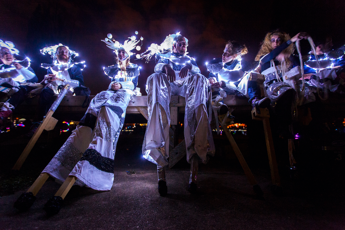 With that in mind, Footner, Hamilton, and Schiavone wanted Creative Alliance to be a place where artists could set roots, and the organization has spent more than two decades deliberately building community with all kinds of bombast. Part of this is accomplished through landmark annual events, like the spectacular Great Halloween Lantern Parade in Patterson Park; the Día de los Muertos celebration; a big-tent, salon-style members show; a gala that all but requires absurd, thematic dress-up, and more. The exhibition space features rigorous shows throughout the year, and the theater regularly hosts music and performances as diverse as, say, indigenous Hawaiian folk music, Klezmer dance parties, and Tuareg guitar music alongside local R&B performances, burlesque and drag shows, and screenings of Baltimore-made films. To accommodate such a wide variety of programming, Creative Alliance has always been branching out and growing towards the light.