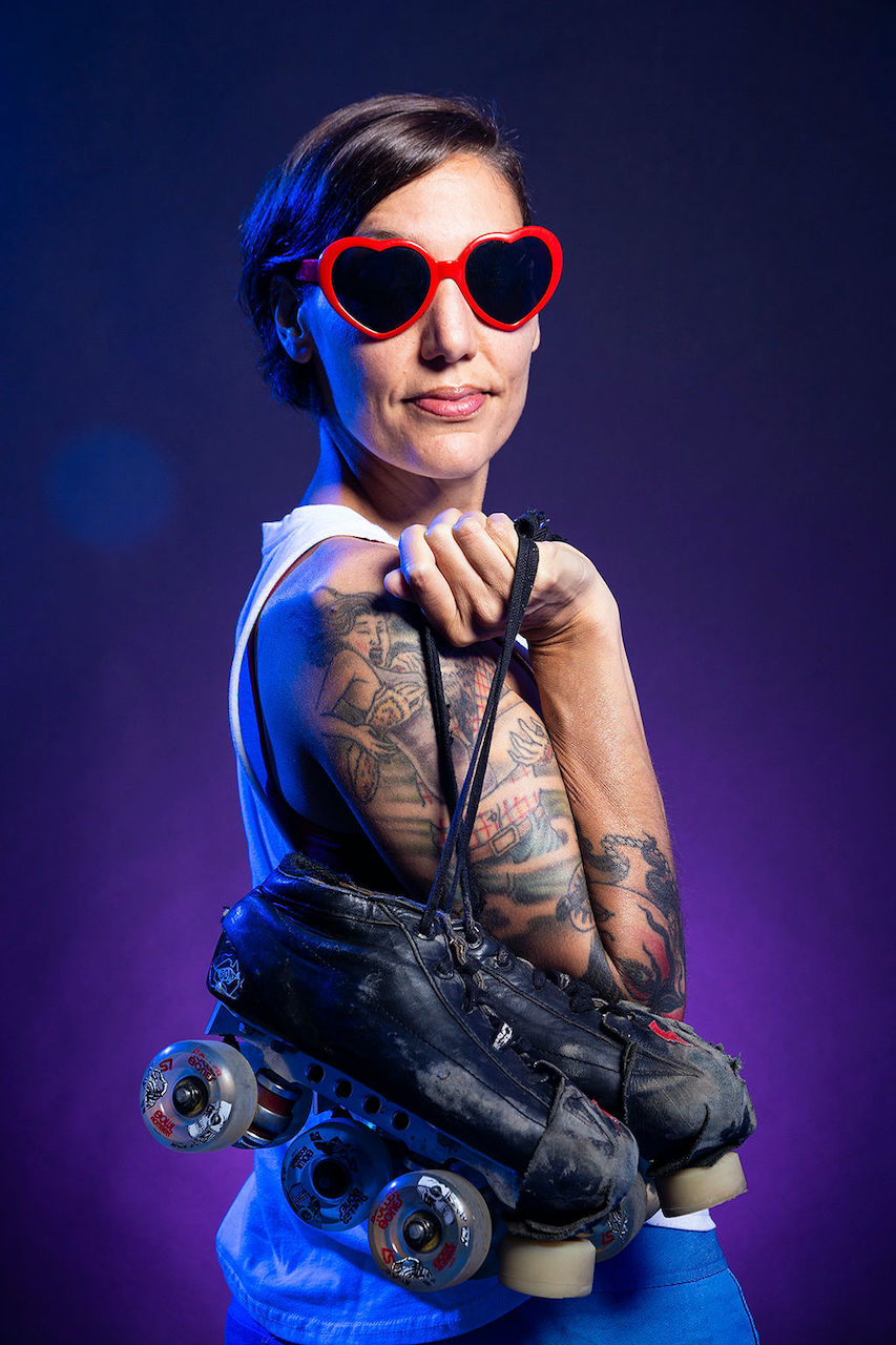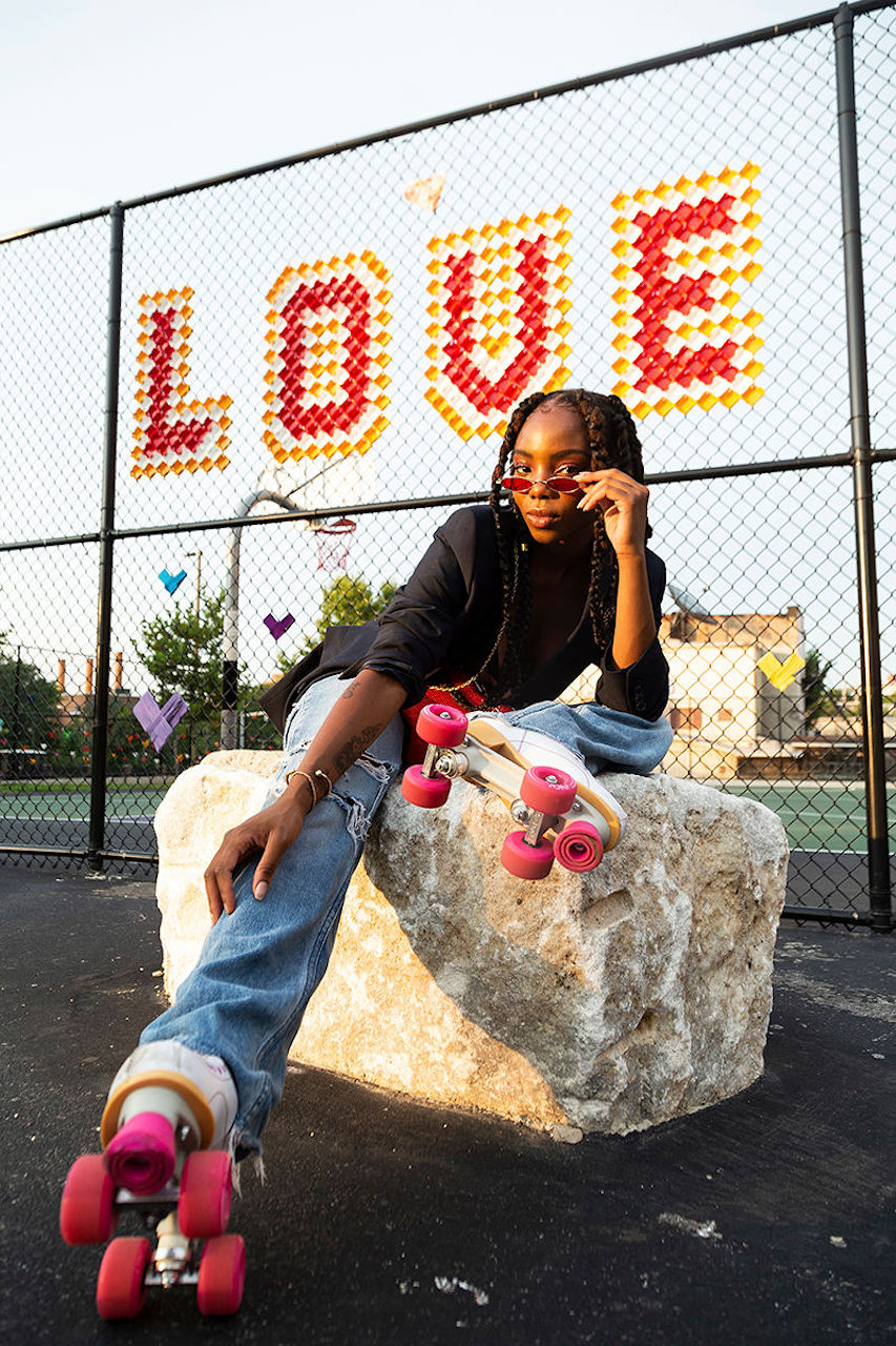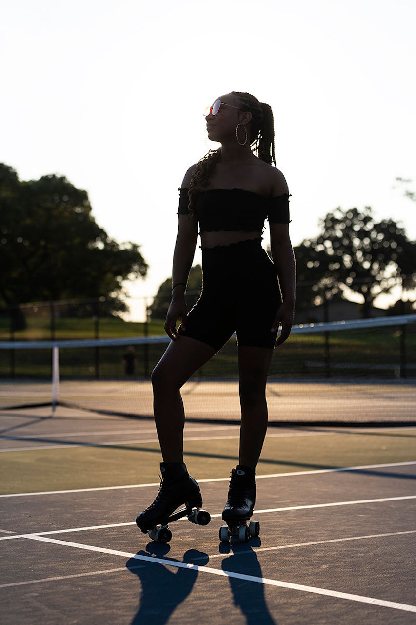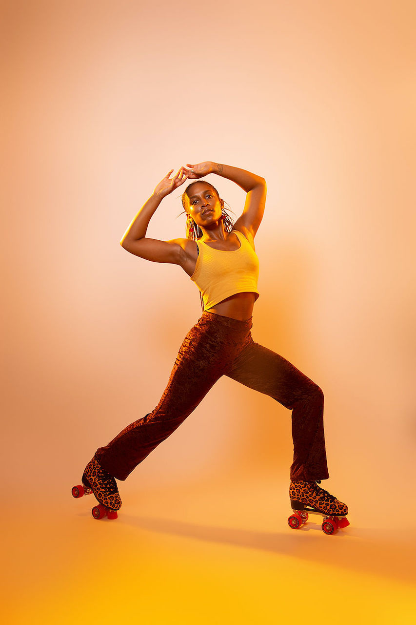 A documentary photographer by trade, Robinson began capturing her companions with their limbs in motion suspended in time, as well as the natural glamour of confident women who are totally in control of their bodies and having fun with that power. Skating is something skaters do just for themselves, just for enjoyment, and that’s what makes it so special. Her subjects dressed for the shoots wearing whatever they felt best in, and the results portray “the beauty that comes from celebrating life through movement and female empowerment,” says Robinson. This series of roller-skating women, called SK8R GRLS, was one of her first occasions to reconnect with people, her favorite subject. The resulting pictures, shot in the studio and outside during the “golden hour,” right before sunset when the light is at its warmest, are evocative of the warm-color gel lights of 20th-century roller rinks.