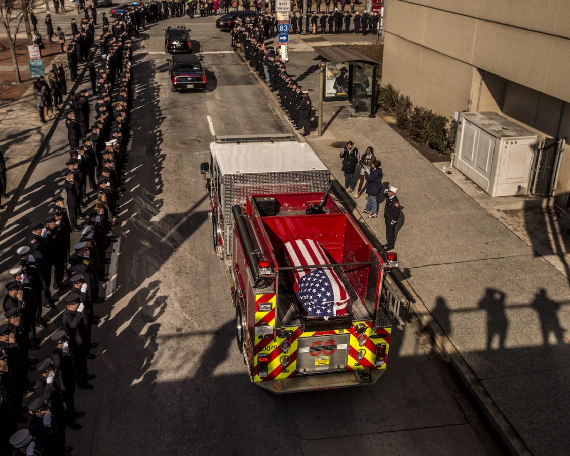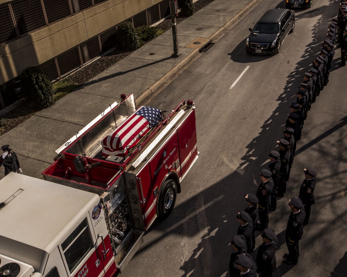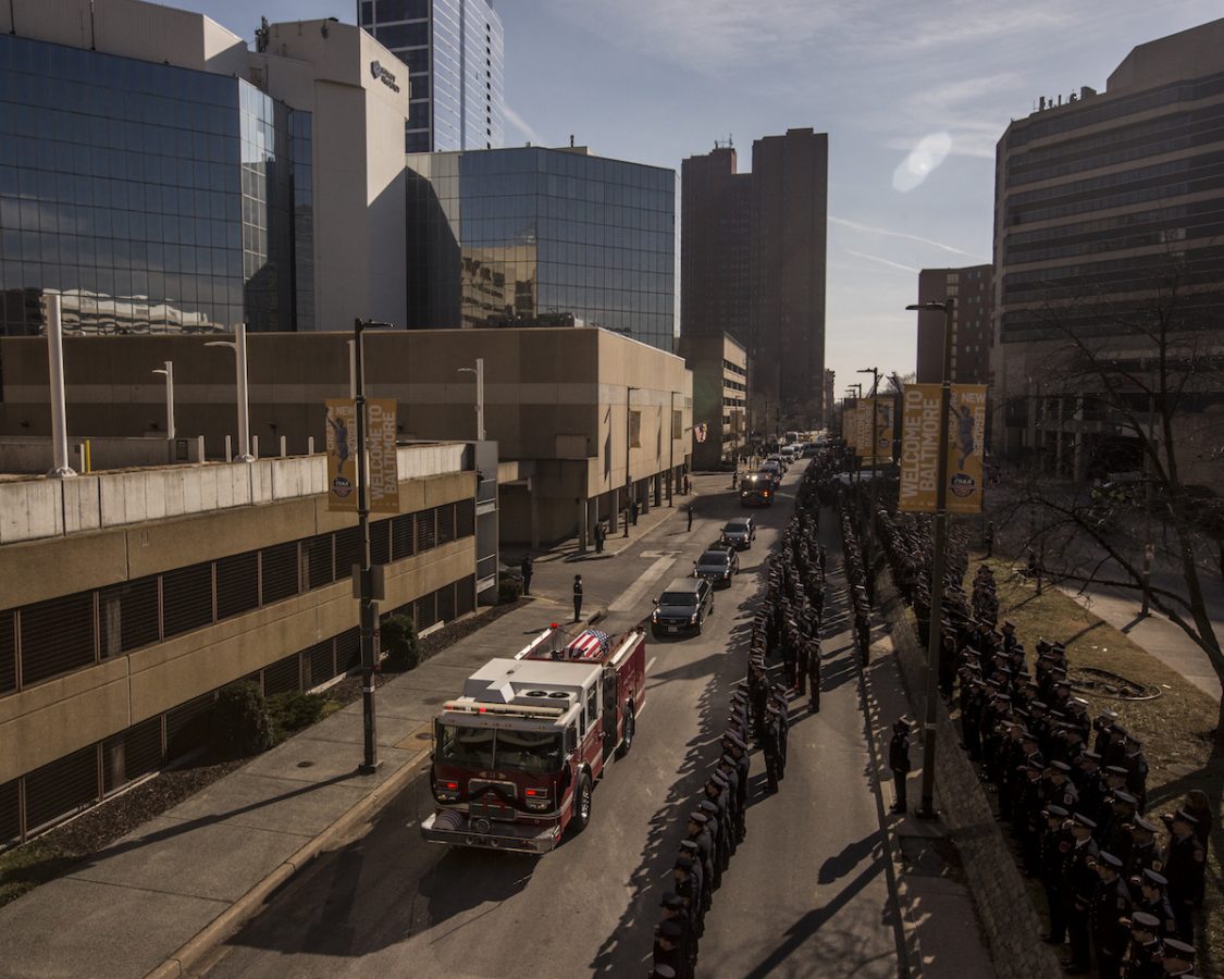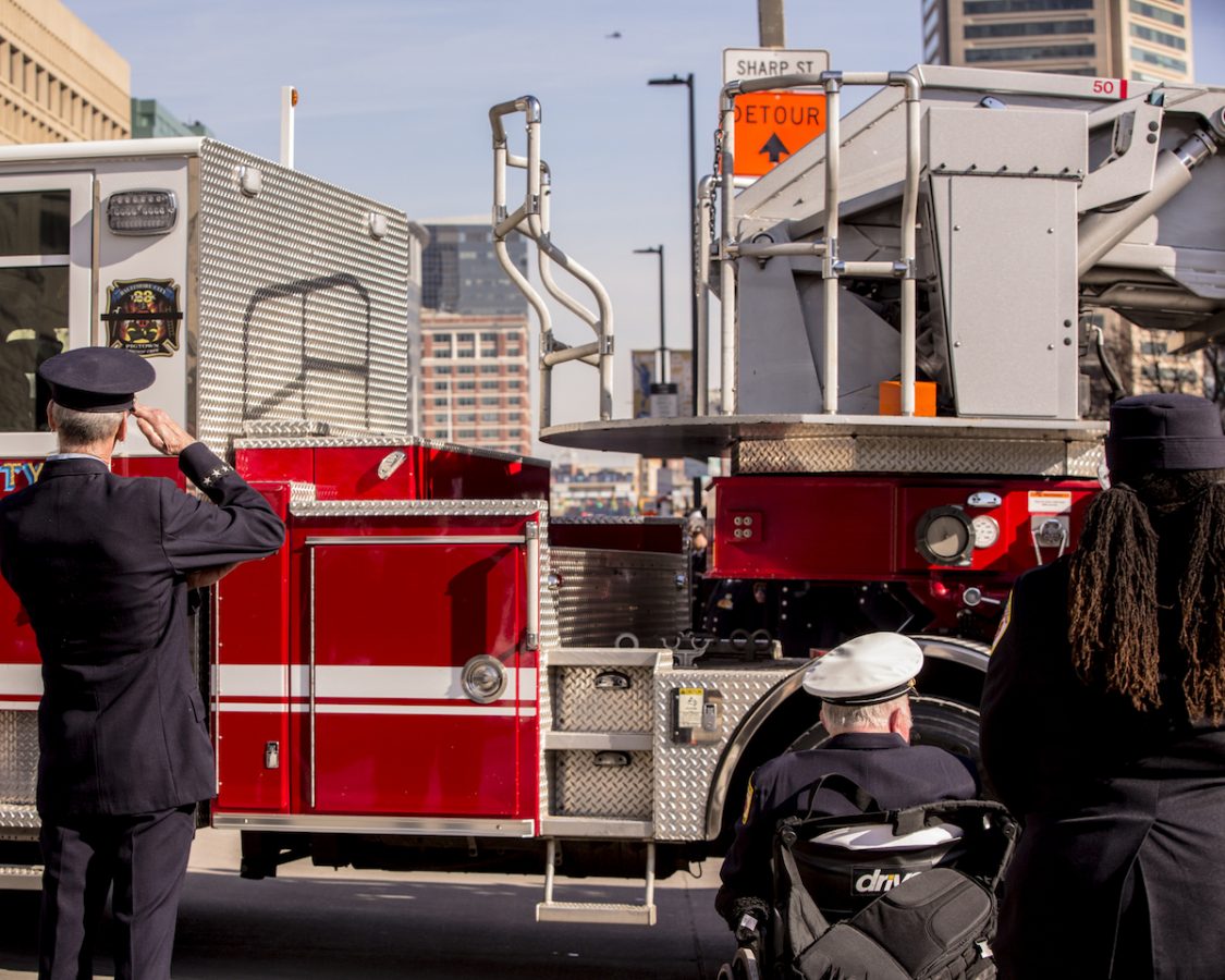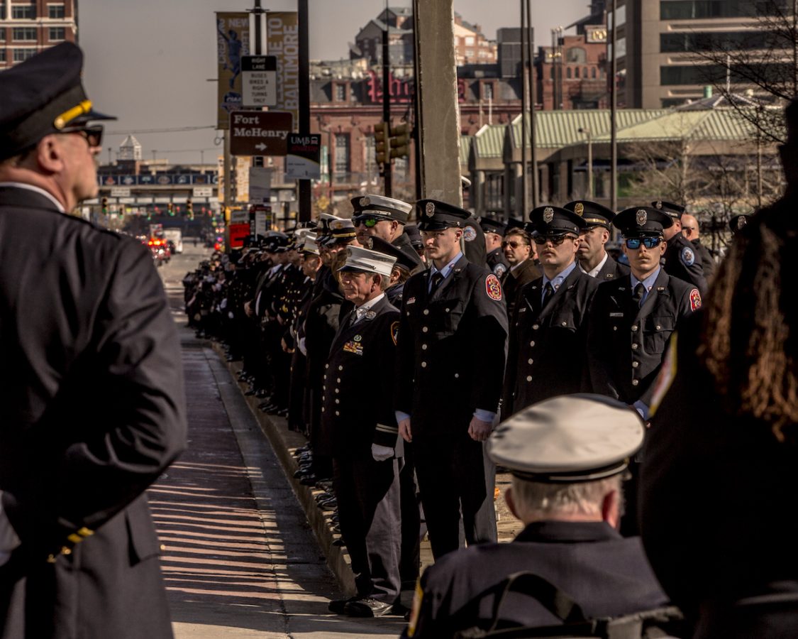After a January 24 fire in southwest Baltimore claimed three Baltimore firefighters’ lives, our city is now in a similar position of solemnity, mourning, and gratitude for their sacrifice. On Wednesday, February 2, firetrucks and emergency service vehicles lined highway overpasses, lights flashing across the city. The Baltimore City memorial service for Lt. Paul Butrim, Lt. Kelsey Sadler, and Firefighter Kenny Lacayo attracted firefighters from as far away as Canada and California, with active members from New York, Boston, and South Carolina who came to pay their respects to the fallen heroes and also to cover shifts for Baltimore firefighters so that they could attend the memorial.