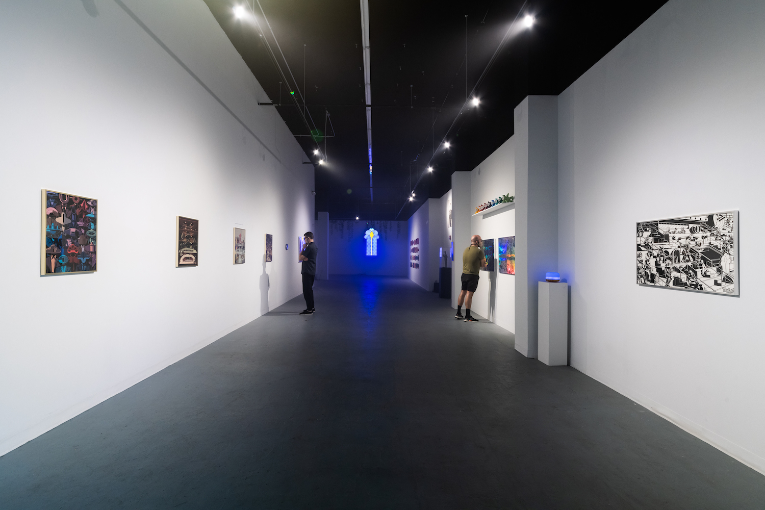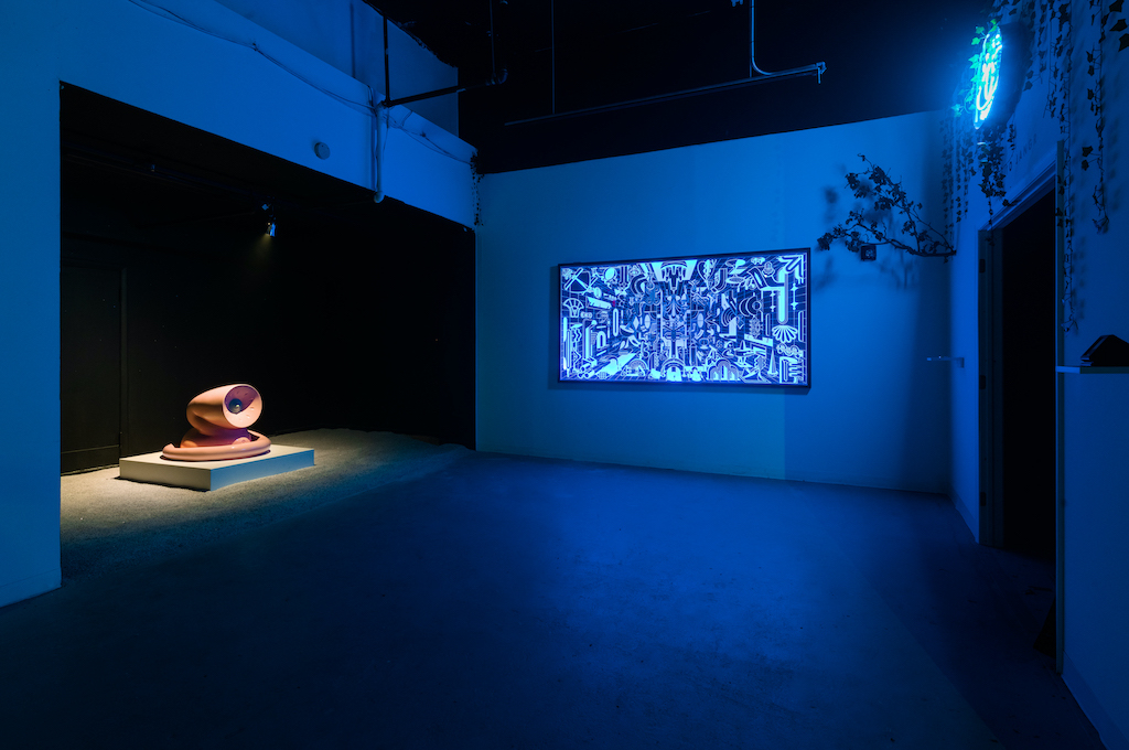 Now, with the market undergoing transformation yet again, TLaloC’s Orbis Tertius: Hlaer to Jangr was ICA’s last show in the space. The show was also the first to make use of these abandoned rooms and corridors, space that many—including Eduardo Corral, aka TLaloC—never knew existed. In an economic and political environment where artists are accustomed to scarcity, the notion of excess space is indeed otherworldly. The fact that ICA had been allowed to operate that gallery space rent-free thanks to building co-owner Mike Schecter also seems a fiction in these times.