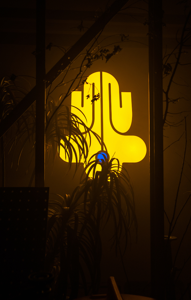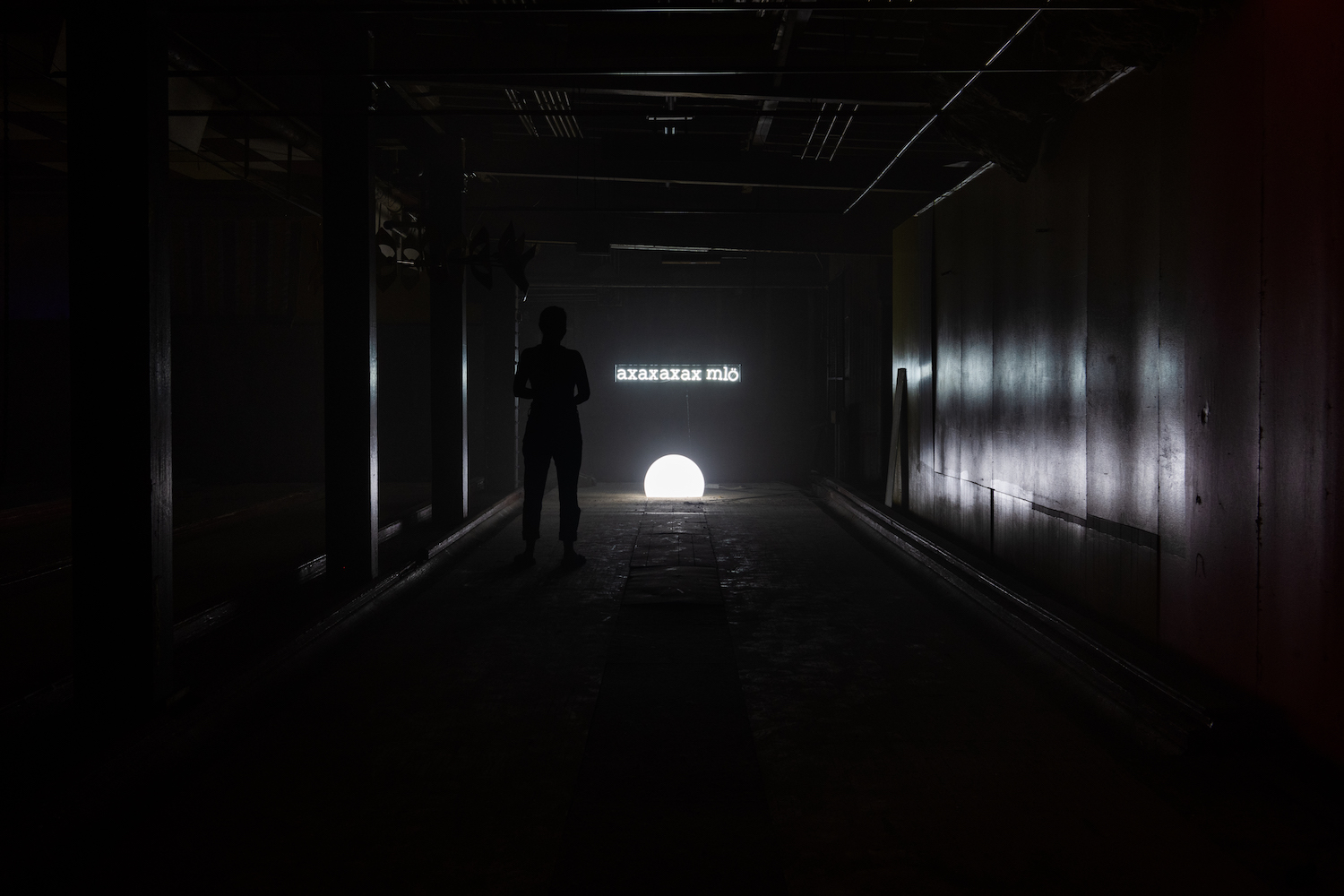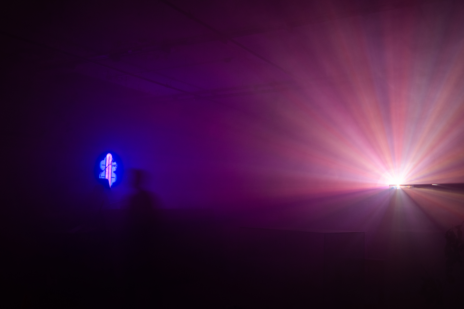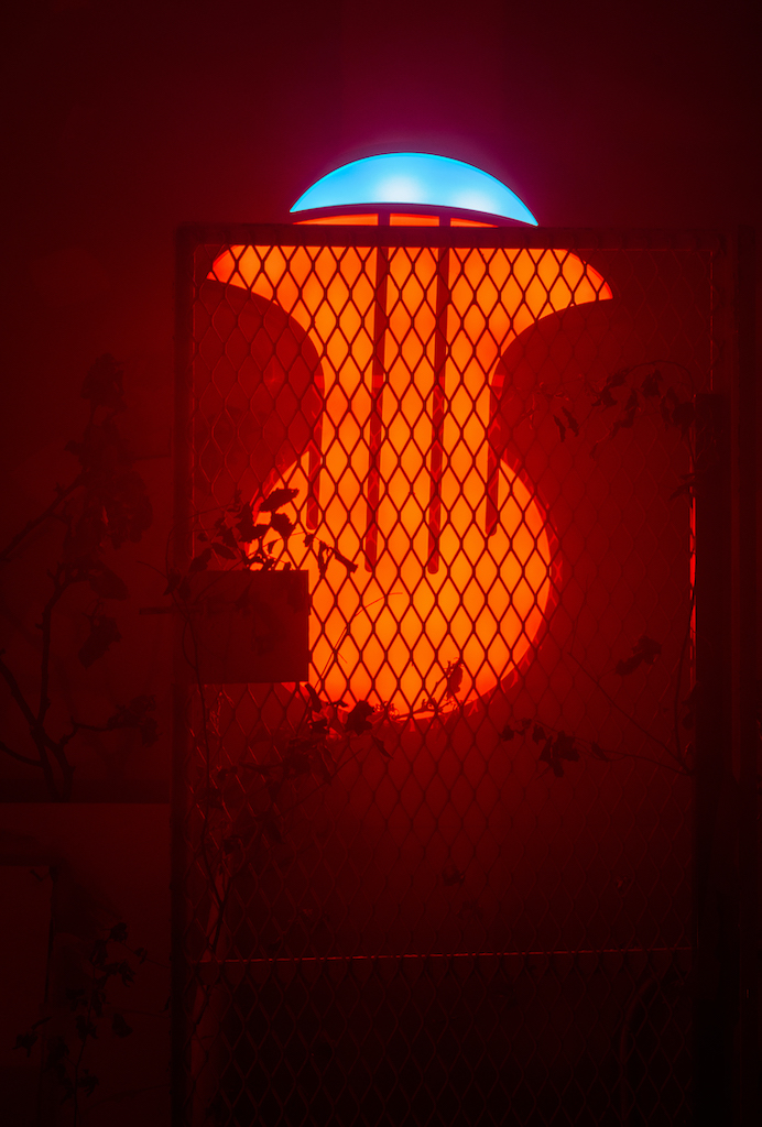 Left unused for 50 years, it took the vision of a group of artists to imagine and manifest a reality in which the neglected spaces within the North Avenue Market have their purpose renewed. Artists are often drawn to these spaces because they are cheap or free, forgotten or ignored, in a state of decay or danger, helping to ensure that artists are left to their own devices. Abandoned space is often accessible to the artist because its value is invisible. These spaces may exist on the margins, unpoliced, or literally underground. The dark, interior room of Orbis Tertius: Hlaer to Jangr—with neon sculptures glowing through fog, mop buckets, traffic cones, and box fans, and a soundtrack of booming industrial groans (composed by Mexican jazz drummer and composer Miguel Soto)—felt half house of horrors, half delinquent rave venue. The ruins of one past became fertile ground for a radically different future.