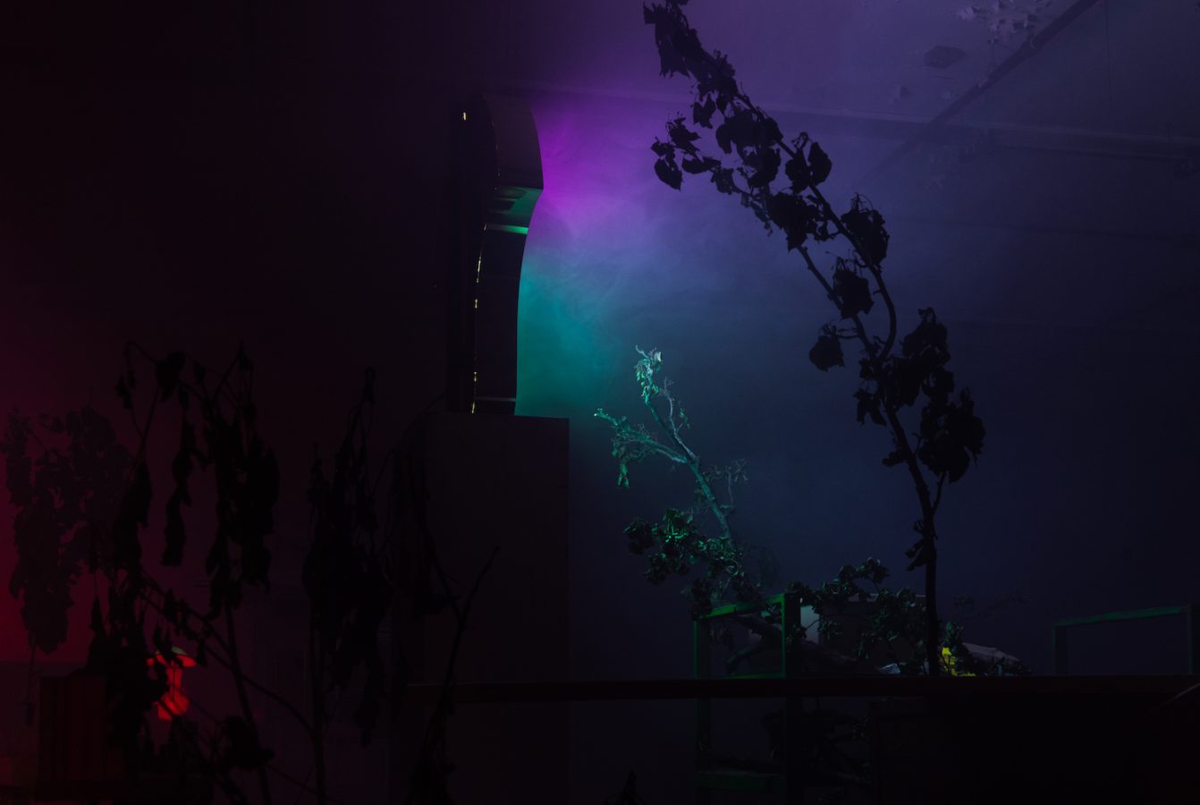 This idea that an imagined world, when allowed to grow, can eventually manifest in our real one is a central pillar of TLaloC’s project. This idea also mirrors the creative process of any artist or curator, which is to conceive of a project and then work to make that dream come true. Orbis Tertius: Hlaer to Jangr magnified this process, in part by the sheer scope of the site-specific installation, which included 95 individual pieces spanning four distinct areas, three floors, and about 40,000 square feet. As we were led from room to room through smoke and rubble, ominous sounds and sweet smells, haunting lights and sharp objects, humid air and loose floorboards, the symbolic tropes of Orbis Tertius: Hlaer to Jangr were everywhere.