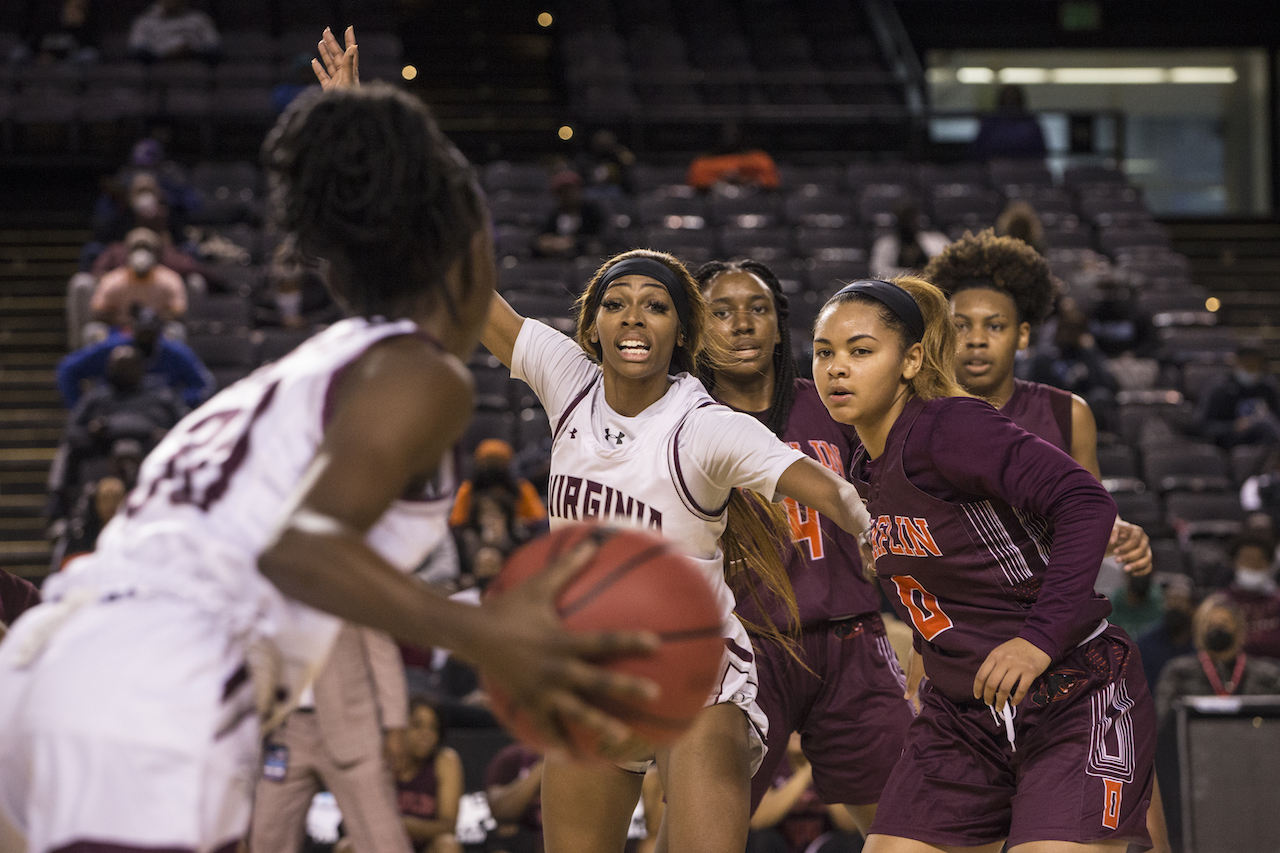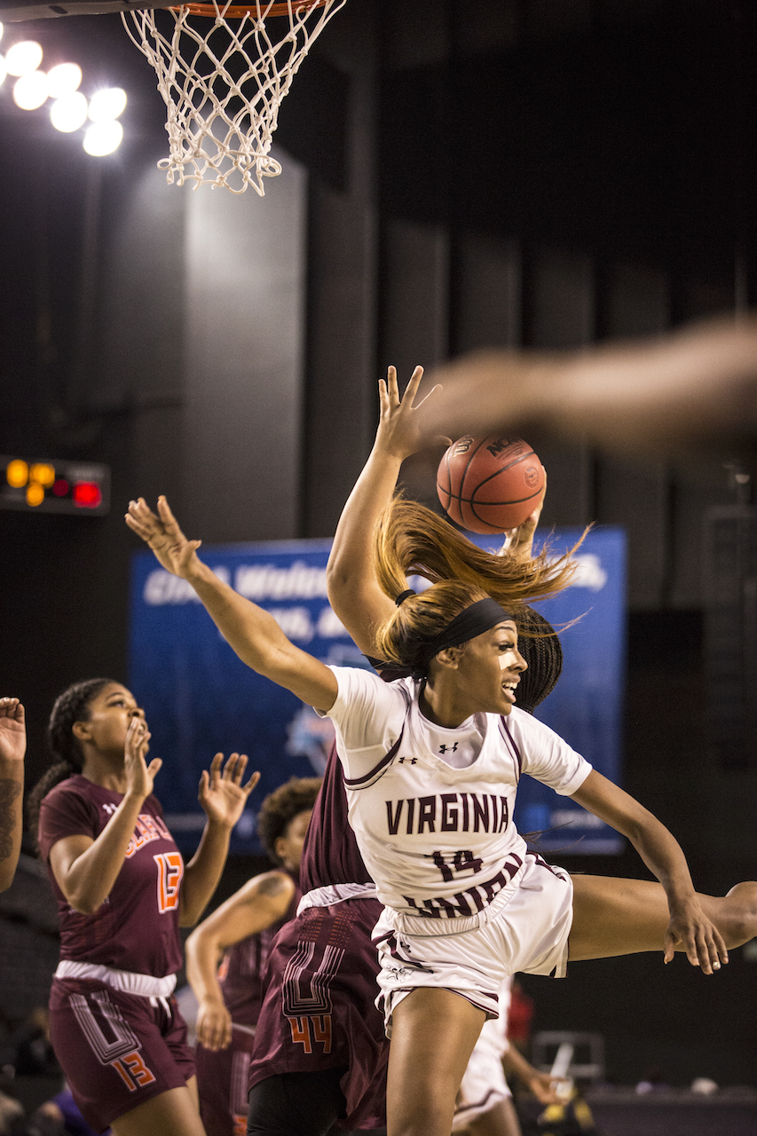 Photographer Jill Fannon captured the first-round contest between No. 7 seed Virginia Union women versus No. 10 Claflin on Tuesday, February 22, at RoFo Arena in beautiful Downtown Baltimore. This was the second victory by a lower-ranked team in the tournament’s first two games.