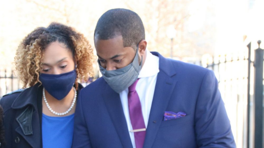 Baltimore State’s Attorney Marilyn Mosby with her husband, Nick Mosby, after he was sworn in as City Council President in December 2020. (Fern Shen)