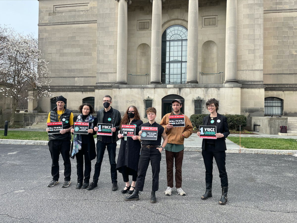 Earlier this month, the BMA posted a message on its website about the unionization effort, saying that the museum would not agree to an election overseen by the city because of the power they claimed this gives a third-party arbitrator. Namely, this kind of arbitration would enable the wall-to-wall union to exist and has been a common practice in Baltimore City. The BMA suggested instead that the workers’ union election should go through the National Labor Relations Board instead—a nonstarter for the workers because the NLRB’s rules don’t allow a wall-to-wall union that would include the security guards.