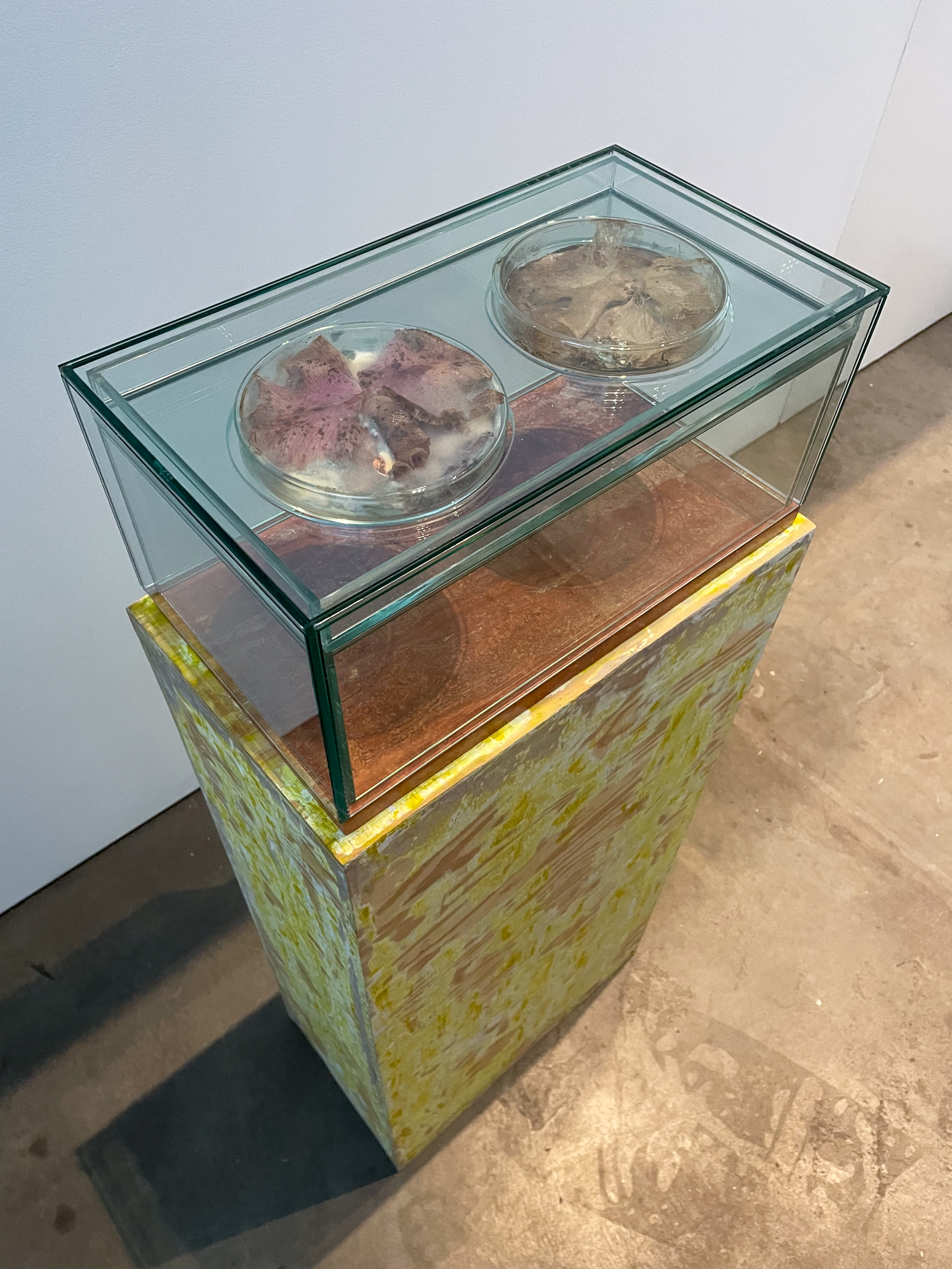 The sound of metal bashing into the wall and then itself is louder than expected. I cautiously look at the front desk attendant and turn the speed down, but they don’t bat an eye. They have informed me that Liz Larner’s “Corner Basher” (1988) is interactive, but it still feels wrong to be destroying the white wall, which I have been accustomed to thinking is untouchable and pristine. The first object I meet immediately implicates me in a process of dismantling. I proceed with a heightened sense of curiosity.
