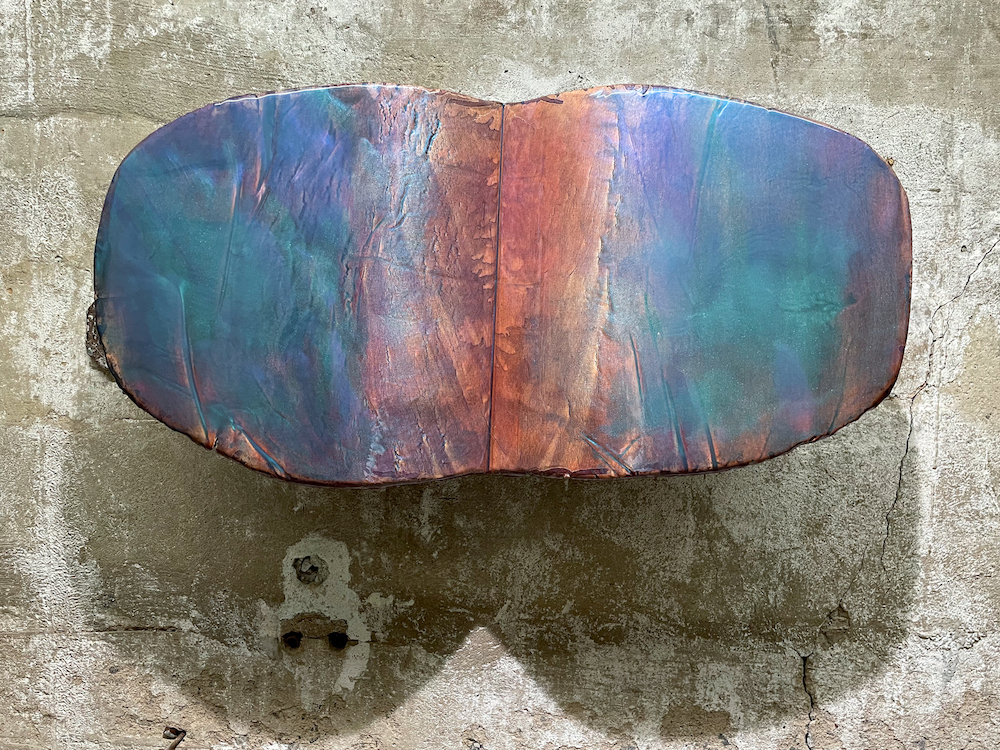 Liz Larner, born in 1960 in Sacramento, plays with materials to morph and defy their expected attributes. The Los Angeles-based artist constructs her pieces from stainless steel, gauze, paper, leather, hair, ceramic, mold, and bacteria, and her subtle sense of color and form is perceptible throughout her show, Don’t put it back like it was, at the SculptureCenter in Long Island City. As if on the ebb and flow of a wave, I’m carried from work to work wanting to touch and feel the sculptures, which undulate between soft and hard, sharp and rounded, heavy and light.