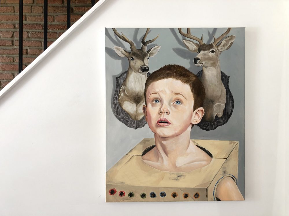 Golden People is a solo show by Baltimore-based artist Izlia Fernandez. She earned her BFA at Florida International University in Miami, FL and her MFA at Brooklyn College, CUNY. The works featured are all portraits done in the tradition of oil painting. Upon close inspection, the figures are caught in a world that lingers with questions and uncertainty.