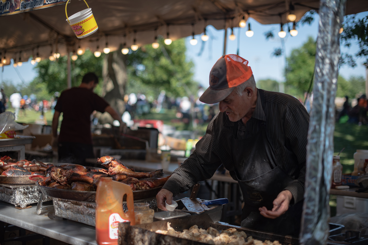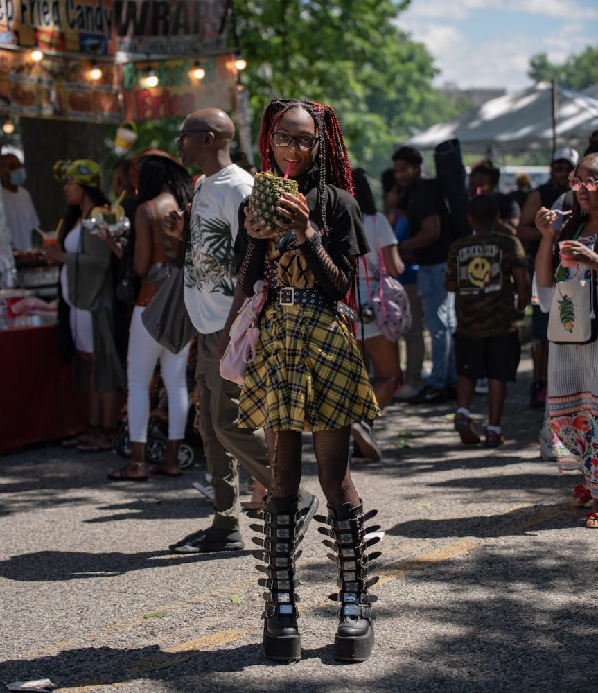 To get to AFRAM, festival-goers trek at least a mile from either the main entrance off of Druid Park Lake Drive or the side entrance from Fulton Avenue, or play chicken crossing the street along Lake Drive. The crowd begins to thicken and the music grows louder and clearer by the time you get past Taylor’s Grove and onto East Drive. The first line of tents appears right before turning into the main throng of the festival, with a variety of city offices and local organizations giving out pamphlets. Then you move into the festival food court, which has your typical festival vendors that sell giant turkey legs and fancy drinks served in pineapples. This year, however, I was rooting for the local Baltimore food vendors such as Cakes By Cynthia and SoBeachy Haitian Cuisine.