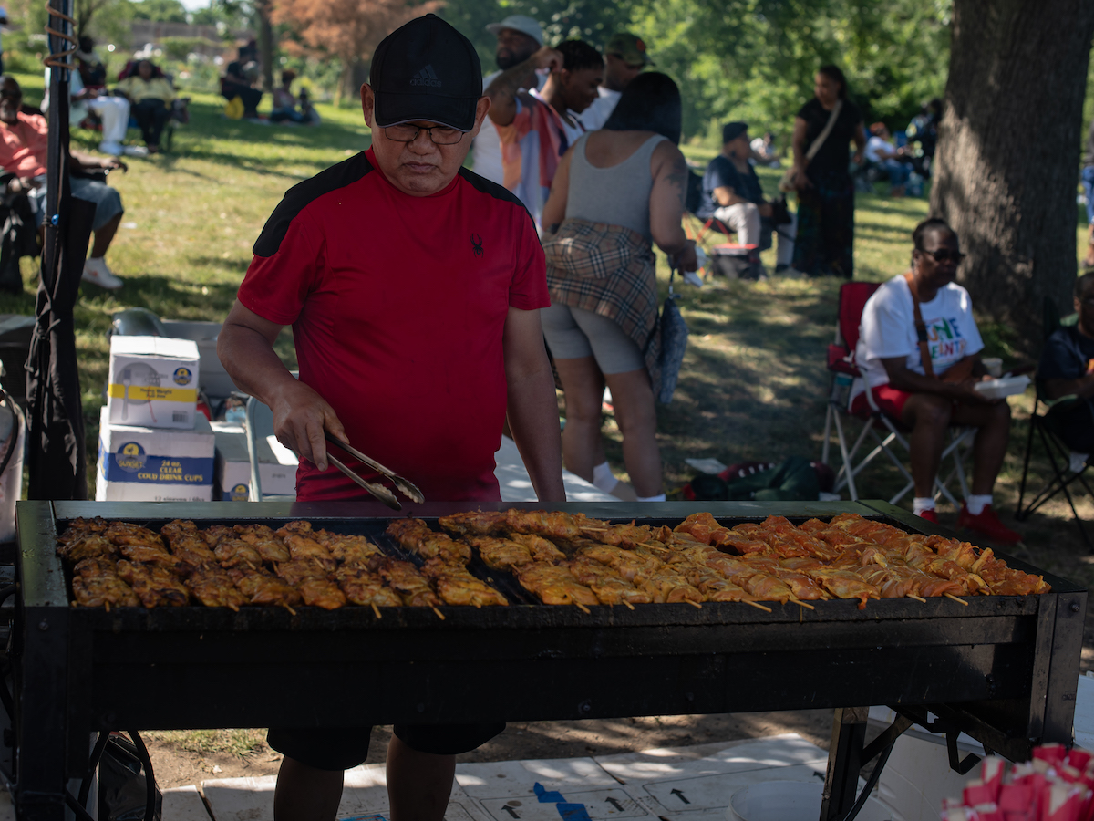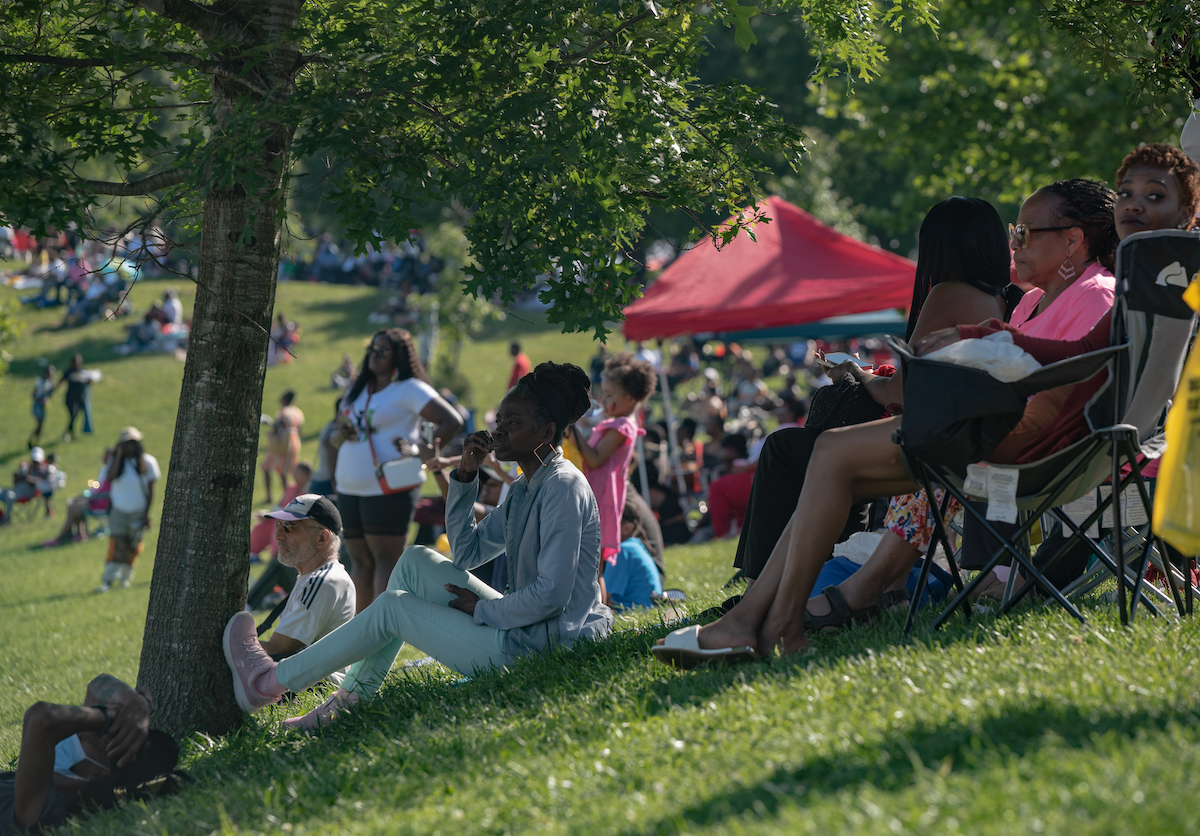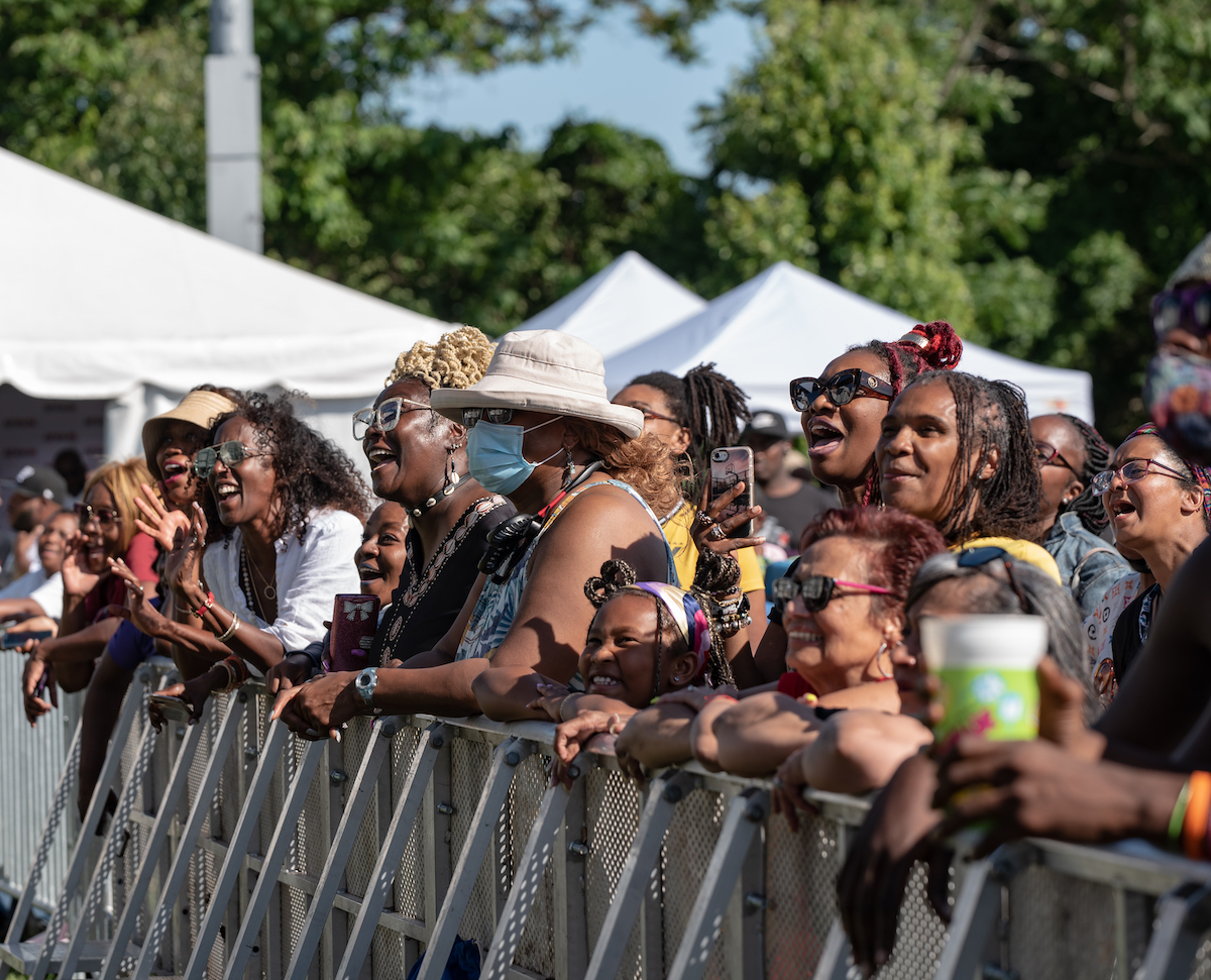 AFRAM has been around since 1976, celebrating black community and culture at various sites around Baltimore; beginning in 1993, the festival was hosted at Camden Yards for the next couple of decades. Former Mayor Pugh moved it to Druid Hill Park in 2017. It was canceled in 2020 and hybrid in 2021, so it felt good this year for the full two-day festival to return to Druid Hill on the weekend of Juneteenth. Its location at the park allows more space and relief. There’s more ease and beauty in lounging on a grassy hill, singing along to El DeBarge, than standing around on hot asphalt with nothing to look at but I-95.