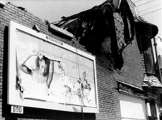The midwest’s great cities can be alienating, and [this] urban essay articulates disturbed relationships between people and landscapes through imagery and editing. In the hour-long black-and-white film still/here (2000/01), Christopher Harris suffuses the blighted north side of Saint Louis with a powerful melancholy, lingering on rubble-strewn lots, decrepit buildings, and empty streets, while footsteps and a continually ringing phone on the soundtrack suggest lives interrupted by the devastation. Holes in a movie theater marquee are powerfully evocative, but even more impressive is the film’s sprawling, almost chaotic form: its calculated incompleteness truly matches the subject, and Harris’s long takes imply–not without a hint of anger–that the ruins of his hometown are eternal.—Fred Camper, Chicago Reader