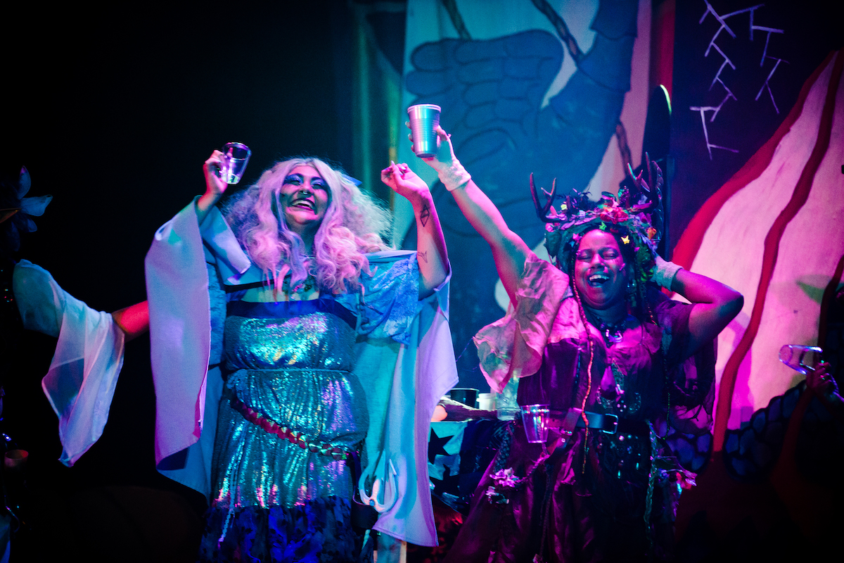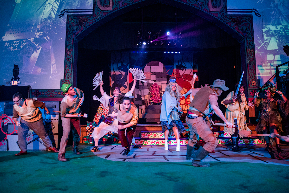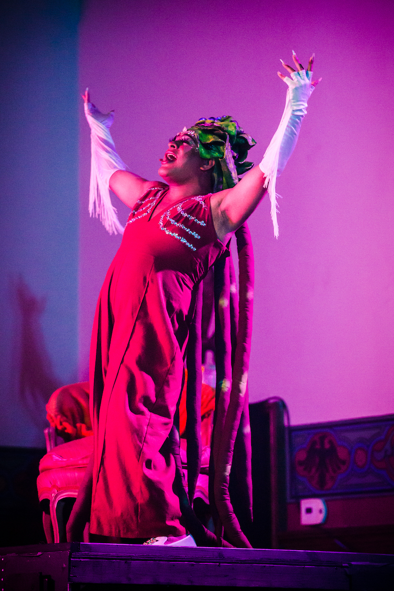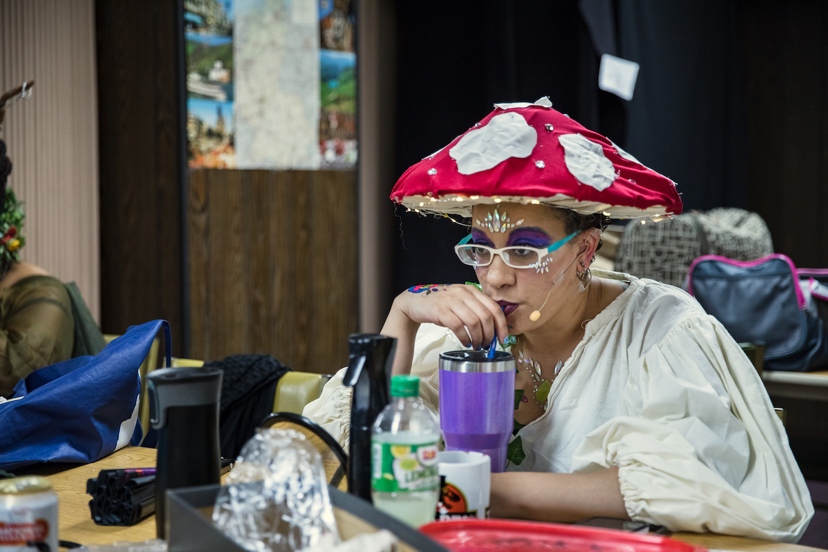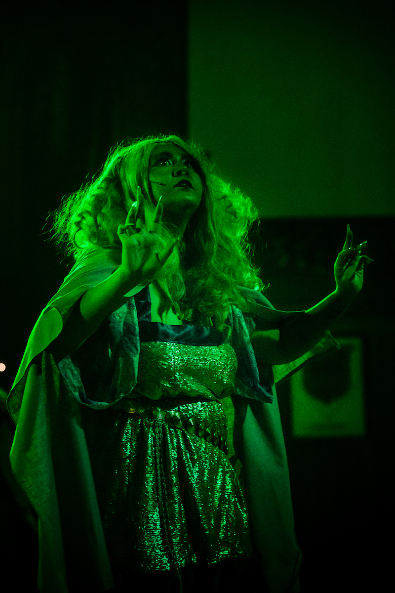 A suite of passionate writers, musicians, stagehands, designers, and performers came together to produce Glitterus: Dragon Rising. The libretto includes more than a dozen original musical numbers written by six composers. A live band featuring synths, electric guitars, fast, precise drumming, and an aerophone brings the show to life. One would be hard-pressed not to nod along as the cast wails the lyrics. It’s an elaborate feat—requiring dozens of collaborators—to generate such an original show. As stage manager Liz Richardson says, “We never hit the same mistake twice, we always hit a new mistake, but it’s always a spectacle, and always worth it.”