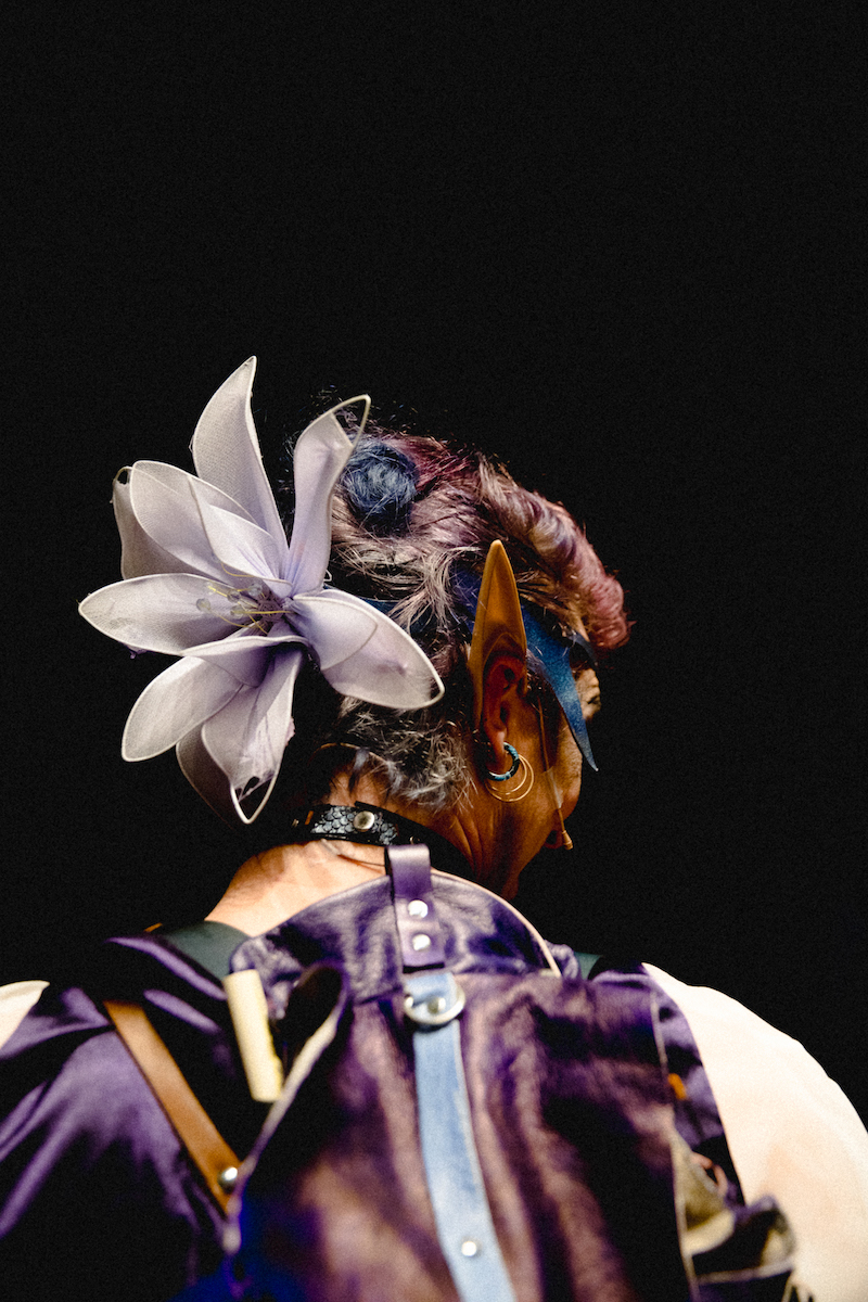 AG Sherman (costume designer): Like a lot of us, I’ve been doing Baltimore DIY stuff for decades. I volunteered with BROS for the first time on the second run of their first show, Gründlehämmer. I went off to do other stuff for a while and came back right before the pandemic, whomp whomp. Corona forced us all to focus. Since then, I worked on some puppet stuff, a few sculptural masks, and ran Costumes for Glitterus