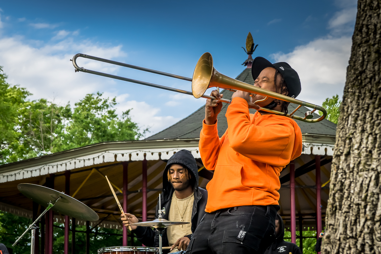 “Packed with talented jazz musicians, Baltimore’s jazz heritage continues each and every day including during COVID by improvising spaces where these artists can continue their craft and earn their living,” says Ribeiro. “Documenting this difficult evolution through photography in parks and semi-empty clubs made me experience the drive and invigorating qualities of this unique North American art-form during these difficult times.”