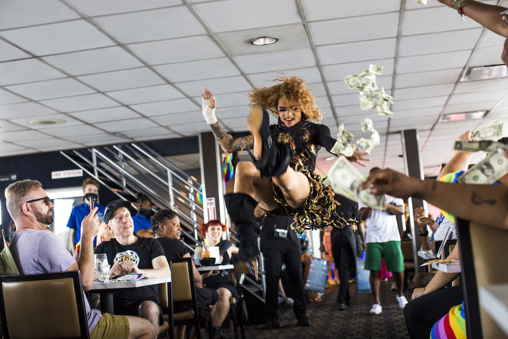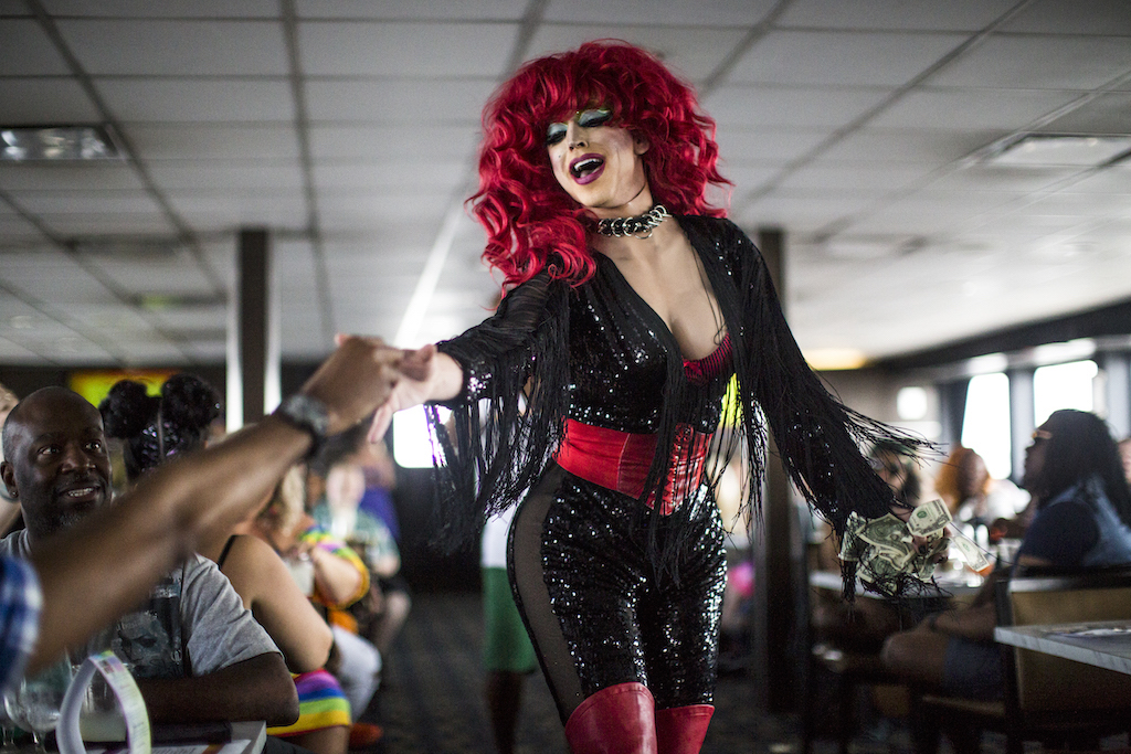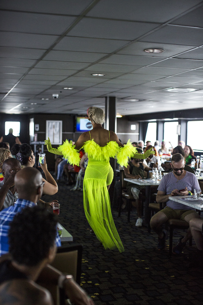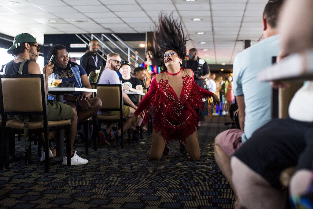 On Sunday, June 26, the Pride Center of Maryland presented Queens Cruise, a three hour boat ride which embarked from the Baltimore Inner Harbor at City Cruises. The event was full of cocktails, dollar bills, early Britney Spears, and rainbow-hued clothing, and featured inspired performances by Absolutely Dragulous Brunch, hosted by The Real Emerald Star with Chanel Belladonna, Lyric Bordeaux, and VV Majesty.