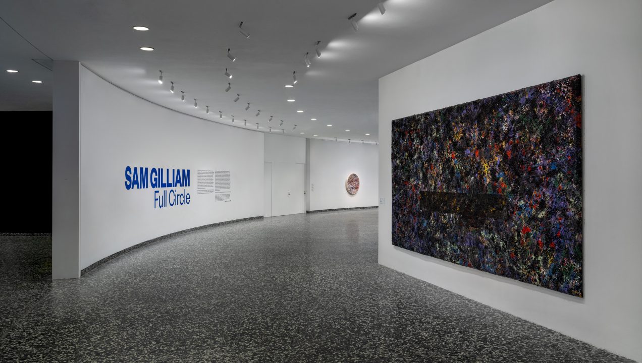 When you hear Full Circle in the same sentence as the seasoned and historically impactful abstractionist Sam Gilliam, a retrospective is probably the first thing that comes to mind. In the case of Gilliam’s latest exhibition, the name takes on several meanings. Of the 18 works on display, 17 are circular, bevel-edged canvases ranging from 3 to 5 feet in diameter. These structures, also known as tondos, mimic the shape of the Hirshhorn Museum and Sculpture Garden gallery where they hang. And poignantly, this exhibition marks the end of the artist’s life and active contribution to the canon. Just a month after Full Circle’s opening, Gilliam passed away at the age of 88.