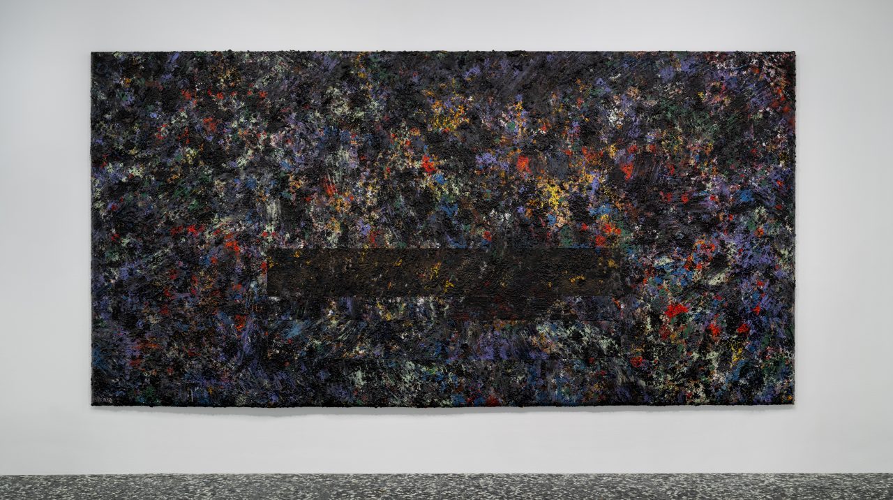 In the collective blackness, all of Gilliam’s colors and contexts exist. From far away, the canvas appears saturated with darkness, and the closer you get, areas of black paint are scraped down, exposing bright, dramatic splotches of yellow, red, and blue. The array of colors is so pronounced that you can see a very deliberate area where Gilliam reapplied the black paint, drawing your eyes to the center. Rail is the chaos from which genius emerged, a premonition realized through the tondos of Full Circle, and a reminder of Gilliam’s life-long dedication to experimentation.