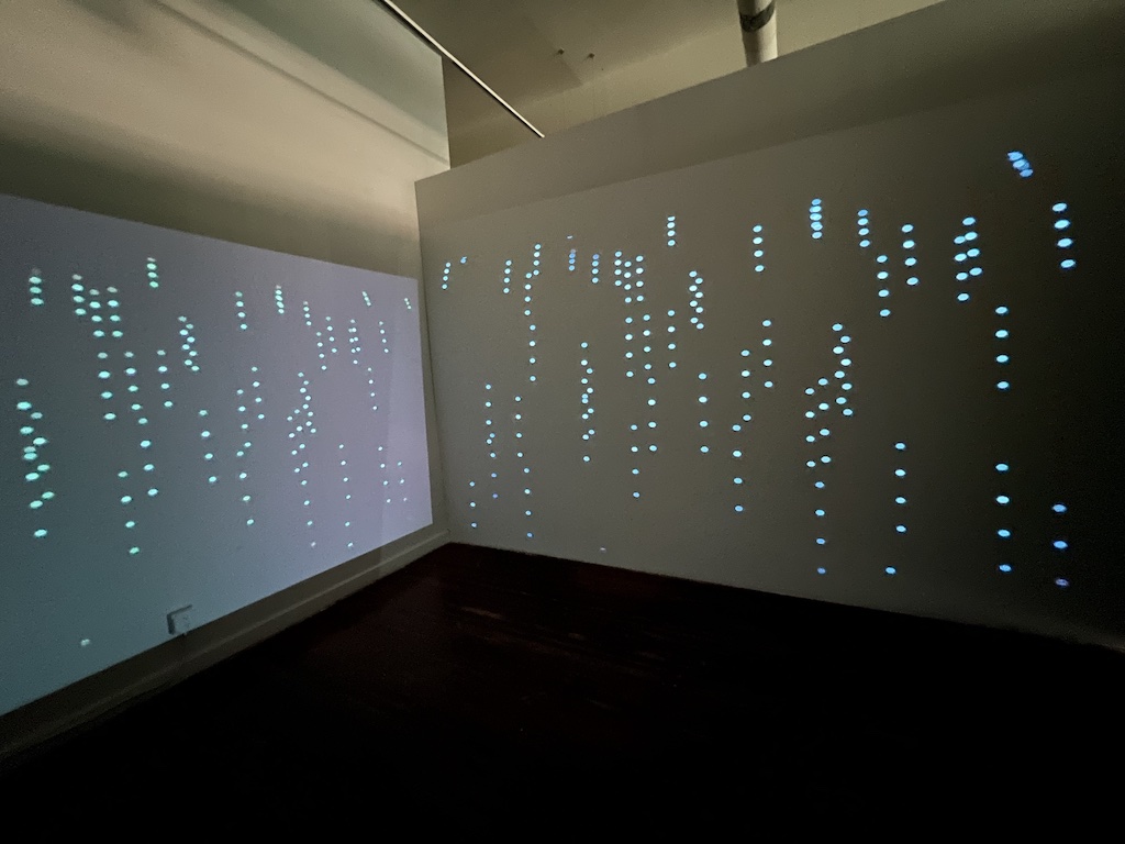With so much of the show connected by textures, I turn to Fahmida Hossain’s videos:  “I Am A Firefly” and “Touch.” The former is a video with a muffled ethereal soundscape accompanied by gradually blooming abstracted imagery of luscious pinks, blues, and yellows; the latter is a black and white video collage of hands touching their surroundings with calm ambient sounds of everyday life. Her exploration of tactile sensation—and also the lack thereof, and the brain’s processing of this information—reflects a curiosity through which we can come to understand our world.