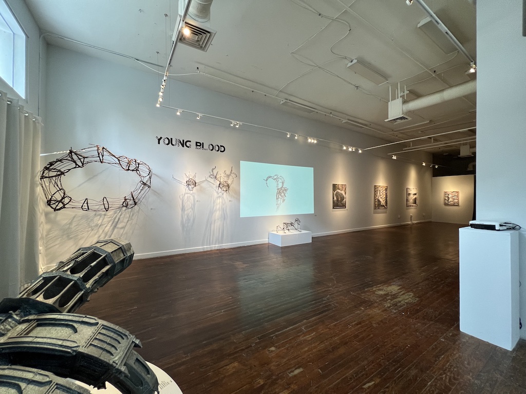 The 13th annual Young Blood exhibition offers a stimulating array of new works by recent MFA graduates from the Baltimore area, including the Maryland Institute College of Art, Towson University, and the University of Maryland College Park. From metal assemblage to digital animation projection to spore-print drawings, the artists display a wide range of craft and conceptual interests. Meditations on being, reflections on the precarious state of the world, and rumination within nature seem to be common guiding principles for the artists.
