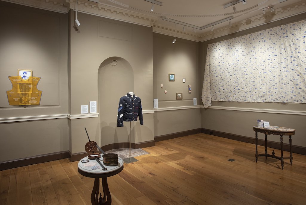 Irene Chan’s exploration of a Chinese Civil War soldier through archival photographs, embroidered jacket, and cutouts also dissects history and represents it to question history and race, and to specifically acknowledge the role of a man has come to be known simply as “Thomas” (also known as Thomas Sylvanus, Ching Lee, Ye Way Lee, and Ah Yee Way). He was brought to the United States from China and enslaved in Baltimore, but after running away he joined the Union Army and fought in the Civil War, sacrificing his own safety for a country that met him with little more than hate. Chan’s work centers an opportunity to atone for the injustices of the past, a necessary part of understanding current social and political contexts in the hopes of building a more equitable future.