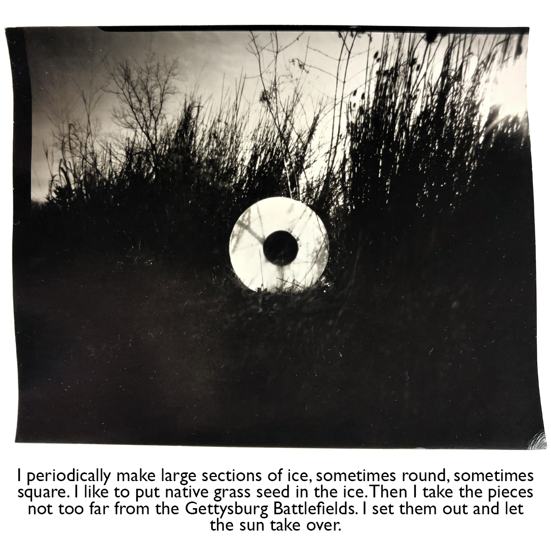 In contrast to these heavy industrial sculptures, Jennifer Yablonsky’s photographs appear like fleeting moments. The intimate black and white photographs were taken with a pinhole camera and printed onto Harman Direct Positive fiber paper, making them one of a kind. They offer snapshots of natural elements where the artist had serene meditative moments and offer us small treasures of nostalgia.