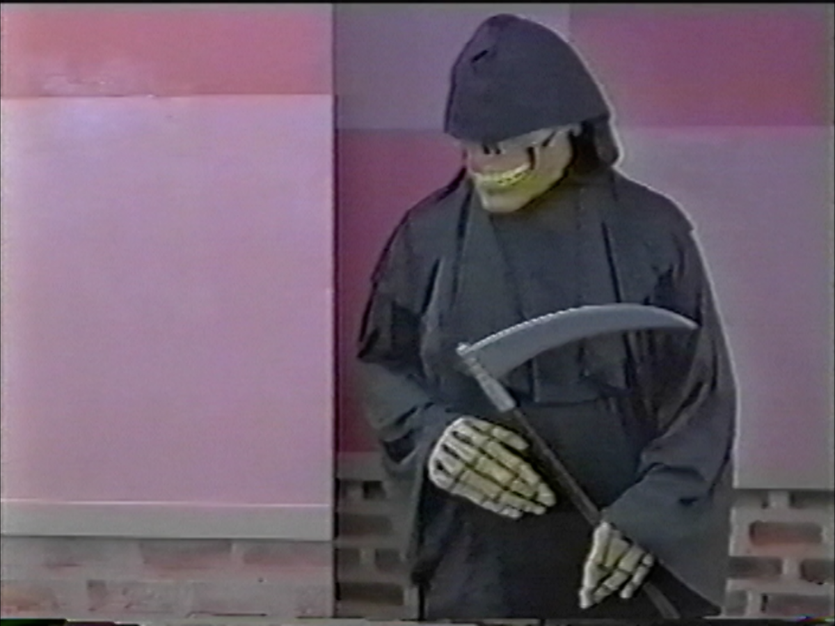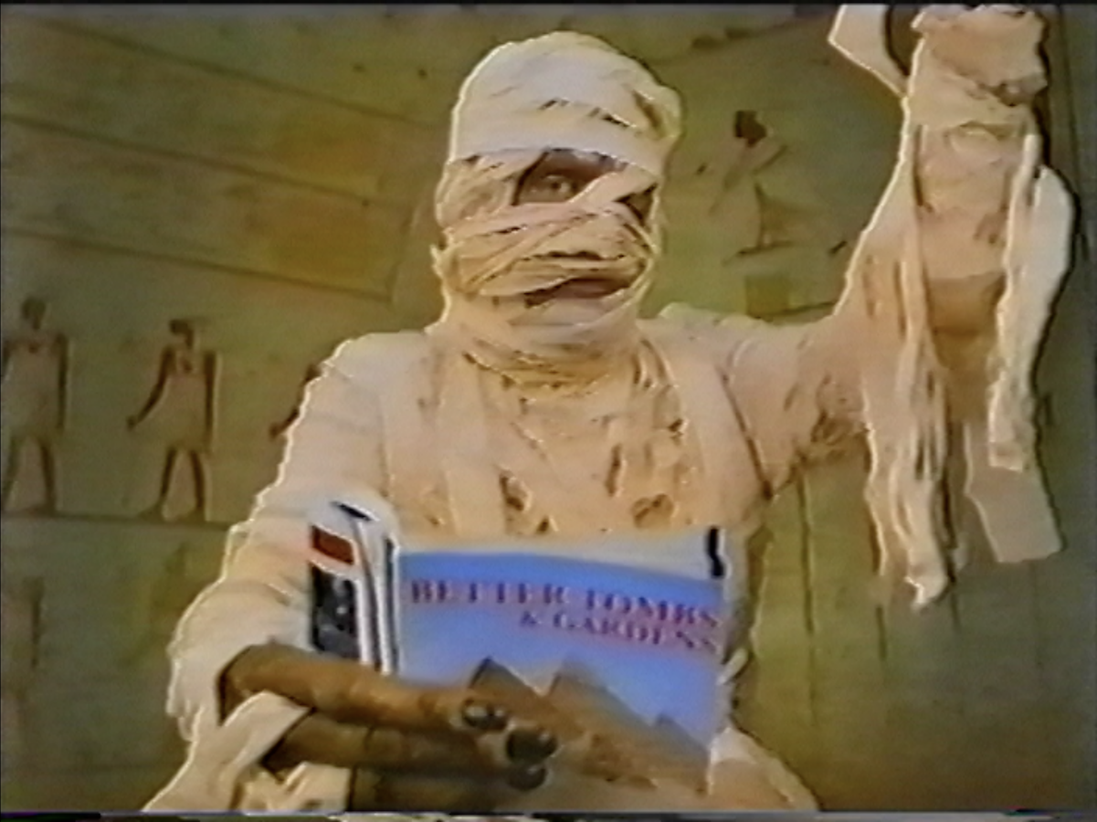 LaMartina’s latest feature, Out There Halloween Mega Tape, which screens locally for the first time on August 20, serves as a sequel of sorts. This “found-footage” collection revisits the station WNUF in 1994 and 1996, bringing back a few characters but centering on a fall-from-grace arc of new character Ivy Sparks (played by Melissa LaMartina, Chris’ wife and creative collaborator), a peppy host who loses her talk show and finds herself doing Halloween news coverage of extremely local supernatural esoterica. She is a Scully seeking aliens sans Mulder.