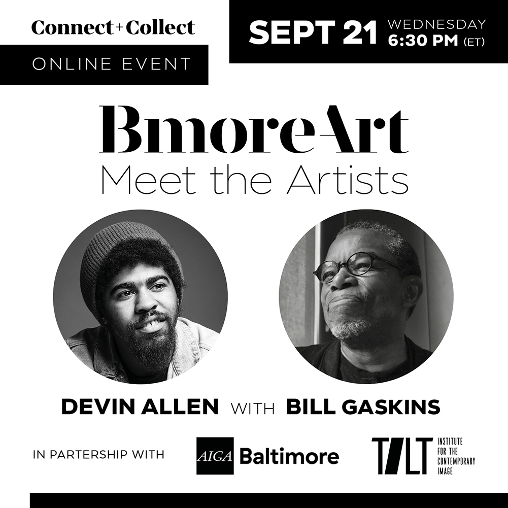 Join BmoreArt’s Jeffrey Kent and Cara Ober for a conversation with photographers Devin Allen and Bill Gaskins. Allen is one of eight photographers featured in Dynamic Range, the first exhibition at BmoreArt’s Connect+Collect gallery that explicitly includes the magazine’s contributors. The exhibit’s goal is to present each photographer as a skilled and multifaceted artist, distinct from their ongoing work with the publication but also revealing overlapping concerns.